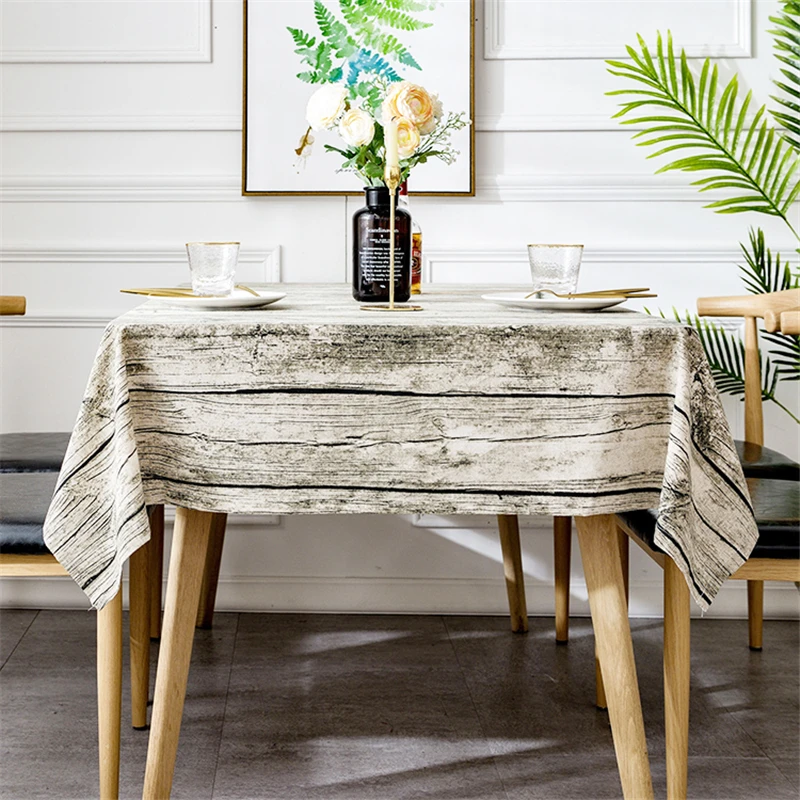 Скатерть из 100% хлопка с пересекающимися краями, Плотная хлопковая скатерть с имитацией древесины для гурманов, фон для фотосъемки, прямоугольный журнальный столик, коврик