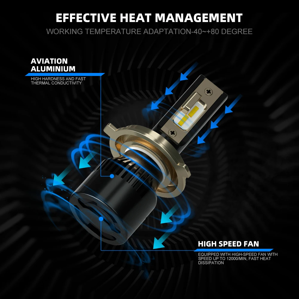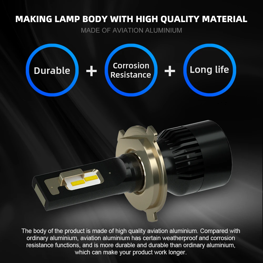 1. Высокая яркость: высококачественный светодиодный чип CSP с чипом 6000K холодного белого цвета; На 200% ярче, чем галогенные фары, используемые в настоящее время. Технология 1903 обеспечивает идеальные шаблоны луча без черных пятен или противотуманных фар. 2. Сильный теплоотвод: оснащенный высокобесшумным вентилятором для отведения тепла, скорость до 12000/мин, эффективность теплоотвода, позволяет избежать скопления температуры на бусинах, продлевает срок службы бусин. 3. Простая установка: установка занимает всего 10 минут. Нет реле. Нет конденсатор с алюминиевой крышкой. Без дополнительной проводки. Подключи и играй. 4. Водонепроницаемость IP68: с использованием встроенного радиатора и алюминиевого корпуса, самоохлаждение, водонепроницаемость и теплозащита. Даже в экстремальных случаях корпус непромокаемого драйвера может работать надлежащим образом. Автоматическая защита от короткого замыкания.