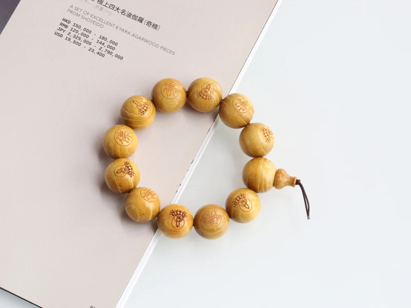 Natural wood bracelet natural Status: Brand New Material: Made of high quality wood, durable Size: 20mm (12 beads) Size: 20mm Conversion: 1 inch = 25.4 mm or 1 mm = 0.0393 inch Color: see picture natural color Product weight: 55g Country of origin: China Carving: Buddha Buddha: Sanskrit "Buddha" is an abbreviation of Buddhist founder Shakyamuni, Elastic elastic bracelet for easy wearing free gift bag