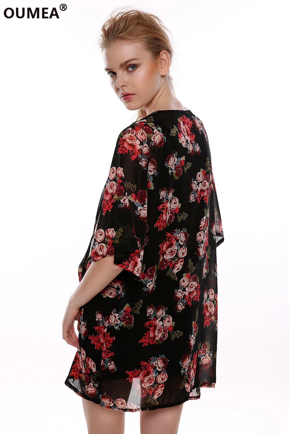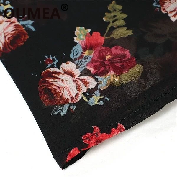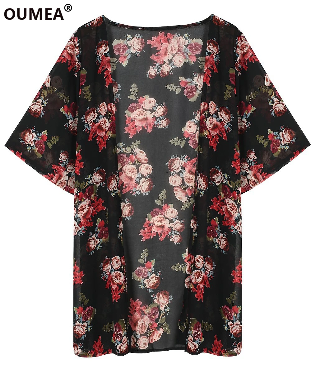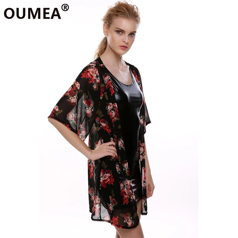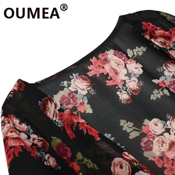 Женское шифоновое кимоно OUMEA, черное повседневное винтажное пляжное кимоно с цветочным принтом