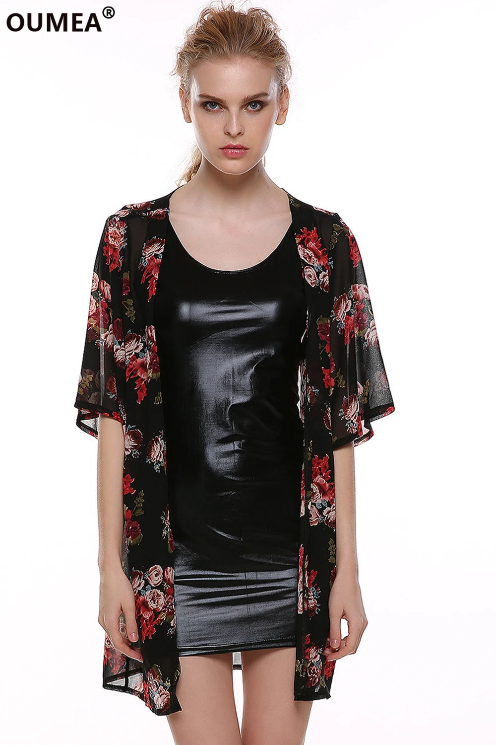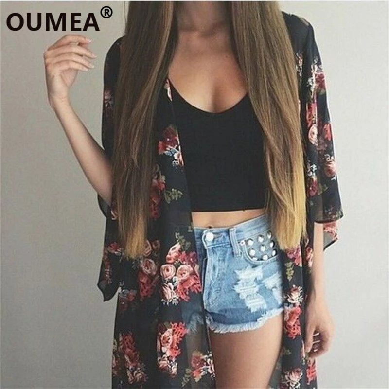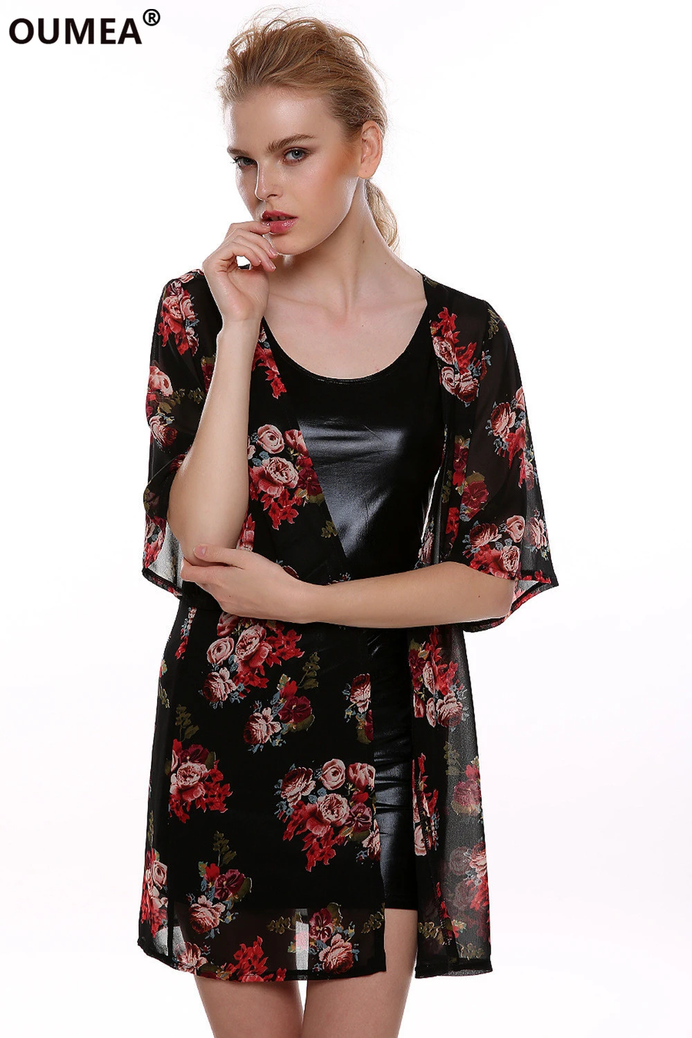 Женское шифоновое кимоно OUMEA, черное повседневное винтажное пляжное кимоно с цветочным принтом