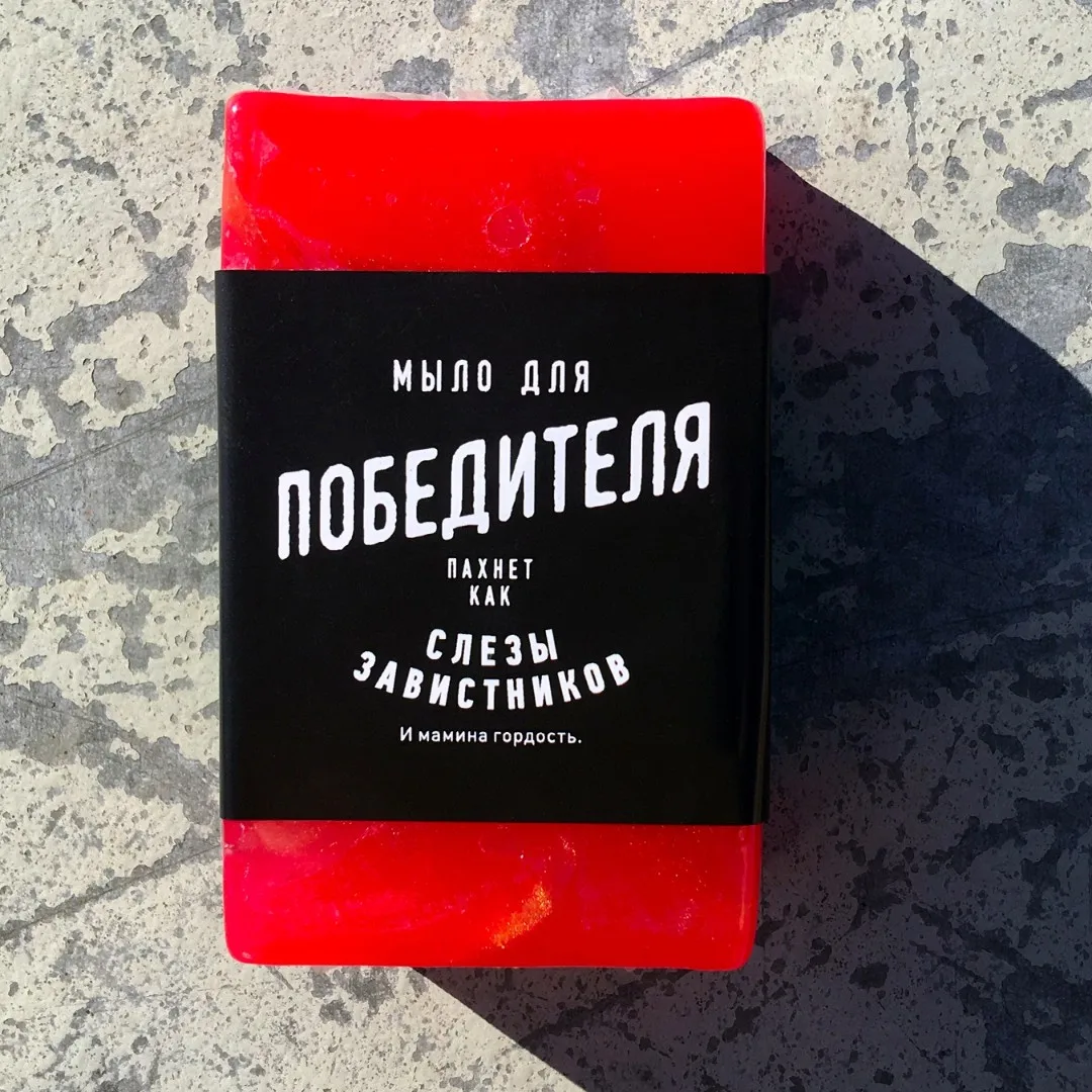 Дизайнерское мыло ручной работы для мужчин и женщин с лидерским характером. Выглядит, как красный мрамор с желто-золотыми прожилками. Также, оно похоже на кусок мяса, символизирующее «добычу» победителя. Аромат: «Шампанское»