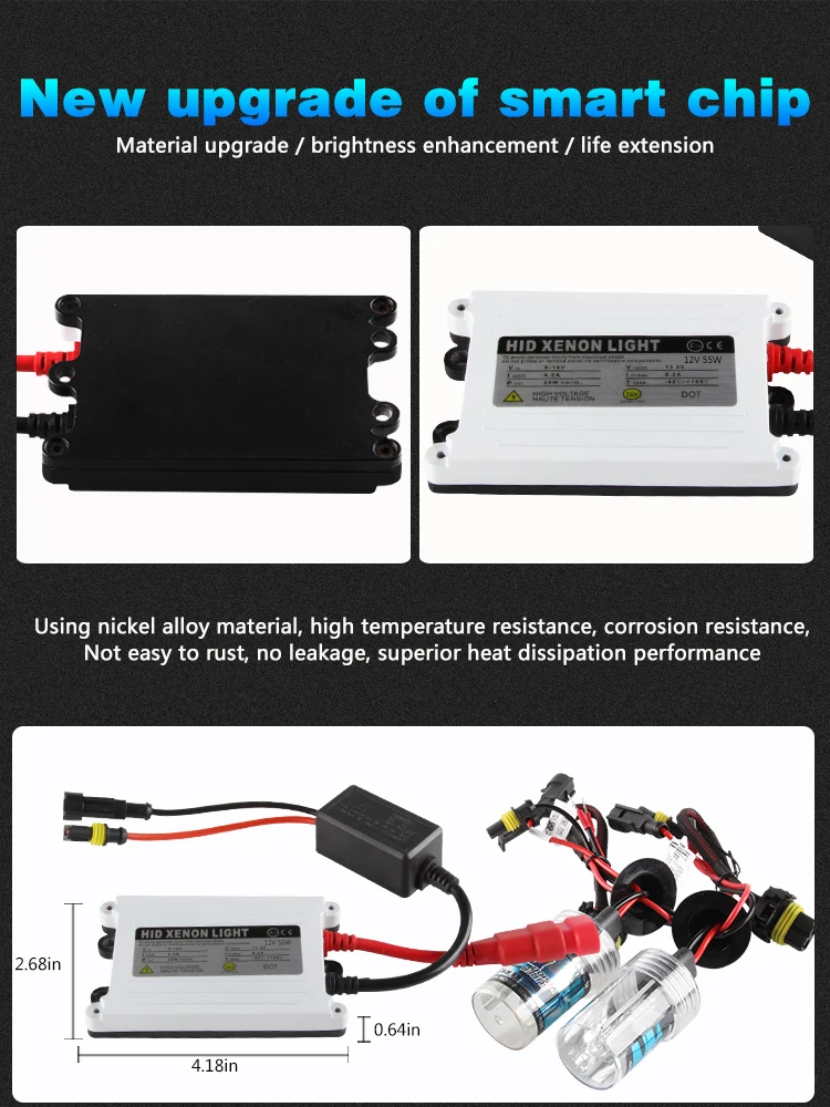 Xenon HID балласт характеристики: Мощность: 55 Вт Цвет температуры: 3000K: золотой светильник 4300K: белый с немного желтым 5000K: белый светильник 6000K: белый ксеноновый светильник 8000K: белый с маленьким синим 10000k: ослепительный синий Входное напряжение: 12 В постоянного тока Рабочий ток: 4,2 A Рабочая температура: -40 ℃ -105 ℃ Более длительный срок службы: более 5000 часов Выходная частота: 380 - 400 Гц Световой поток: более 3000 люменов Особенности: Гарантированное низкое энергопотребление и длительный срок службы, Пыленепроницаемость, водонепроницаемость и теплостойкость. Интегрированный однокомпонентный балласт, упрощенная проводка, которая устраняет любую ненужную путаницу во время установки. Легкость и простота установки. Они легки и прямолинейны. Просто подключи и работай. Совместимость с: Серия H: H1, H3, H3C, H4-1, H4-2, H7, H7C, H7R, H8, H9, H10, H11, H13, H13-2 и так далее Серия D: D1R,D1S,D2S,D2C,D2R 9 серия: 9004, 9004-2, 9005, 9006, 9007-2 и так далее Посылка включает в себя: 2 шт HID ксеноновые лампы 2 шт 55 Вт балласты Обратите внимание: Внимательно прочитайте руководство, а затем установите систему HID. ★Счастливый опыт покупок очень важен для нас, и мы с радостью отправим замену, если возникнут какие-либо проблемы!