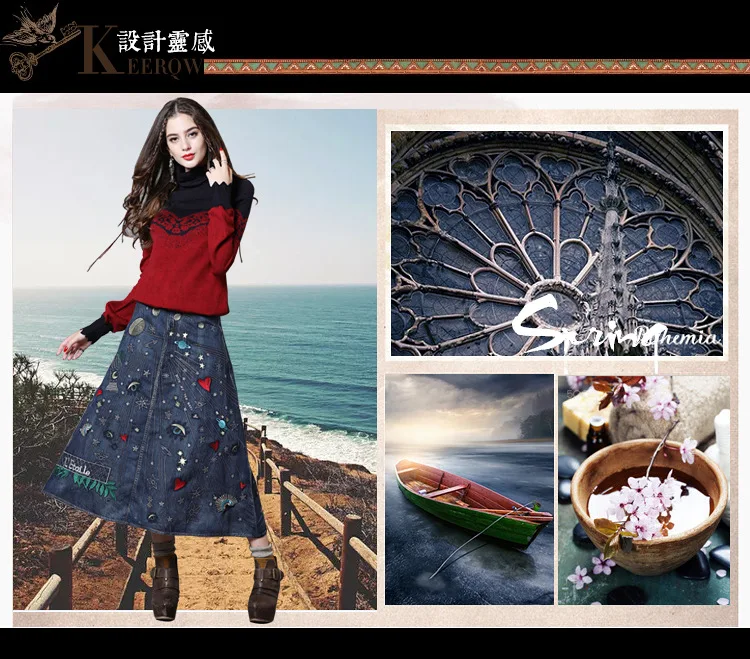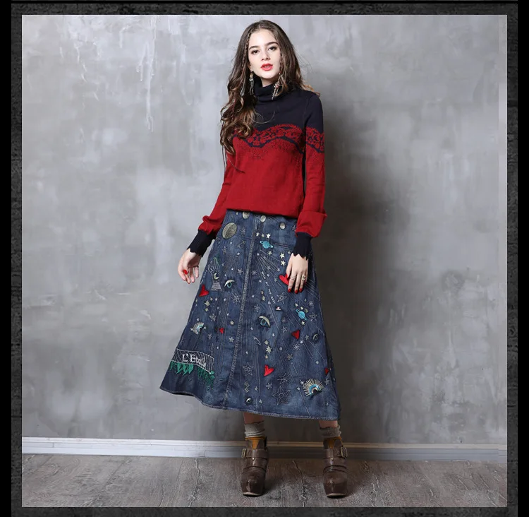 Весна 2020, новая Универсальная модная юбка, джинсовая ткань, повседневный стиль, Ретро стиль, тяжелая индустрия, джинсовая юбка с вышивкой