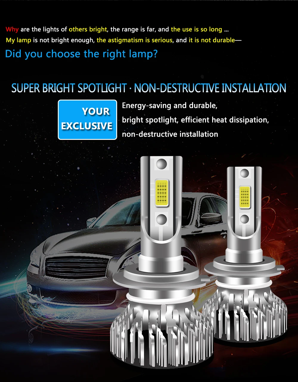 ★Характеристики: Источник света: чипы COB Цвет светильника: 6000K белый Мощность: 100 Вт Люмен: 12000 лм/комплект Рабочее напряжение: 12 В Степень водонепроницаемости: IP68 Рабочая температура: -40 ~ 180 °C Срок службы: >50000 часов Гарантия: 1 год ★Особенности: 【SUPER COB CHIPS】Make с новыми высококачественными ЧИПАМИ COB, ксеноновым белым 6000K, до 12000LM, повышает эффективность на 300%, чем галогенная лампа, делая светильник более концентрированным, чем другие чипы. 【Лучшее рассеивание тепла 】корпус из алюминиевого сплава обеспечивает эффективное рассеивание тепла. Вентилятор с высокой скоростью вращения обеспечивает быстрое преобразование воздуха, сотрудничество с научным рассеиванием тепла способствует быстрому рассеиванию тепла. Срок службы более 50000 часов. 【Application】используйте для автомобиля передний светодиодный головной светильник, ближний свет или Дальний свет, дневной ходовой светильник или противотуманный светильник. Перед размещением заказа убедитесь, что вы выбрали правильный тип лампы. 【Простая установка 】 быстрое включение/выключение времени отклика и устойчивость к вибрациям/Простая установка, просто подключи и работай. Если не освещение для очень немногих автомобилей, пожалуйста, поверните разъем питания, чтобы подключить, это может осветить. ★Посылка включает: 2 шт. белые Автомобильные фары ★Примечание: Перед размещением заказа убедитесь, что вы выбрали правильный тип лампы. Пожалуйста, не стесняйтесь связаться с нами, если вы не уверены в замене совместимости. ** Надеюсь, что у вас есть счастливые онлайн-покупки **