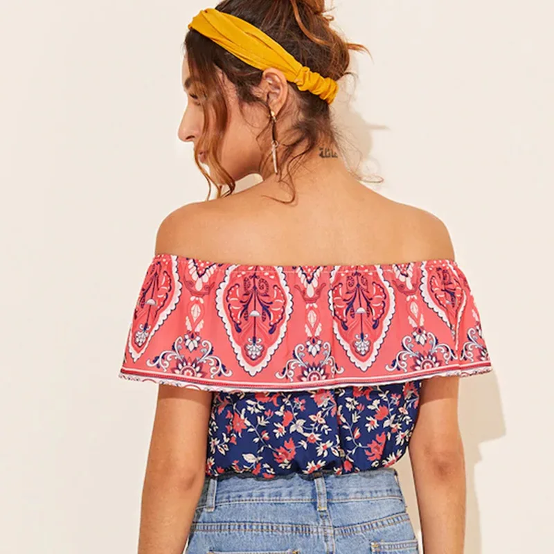Женская Европейская и американская мода топ-труба одежда с открытыми плечами слово воротник Тонкий темперамент шифон рубашка