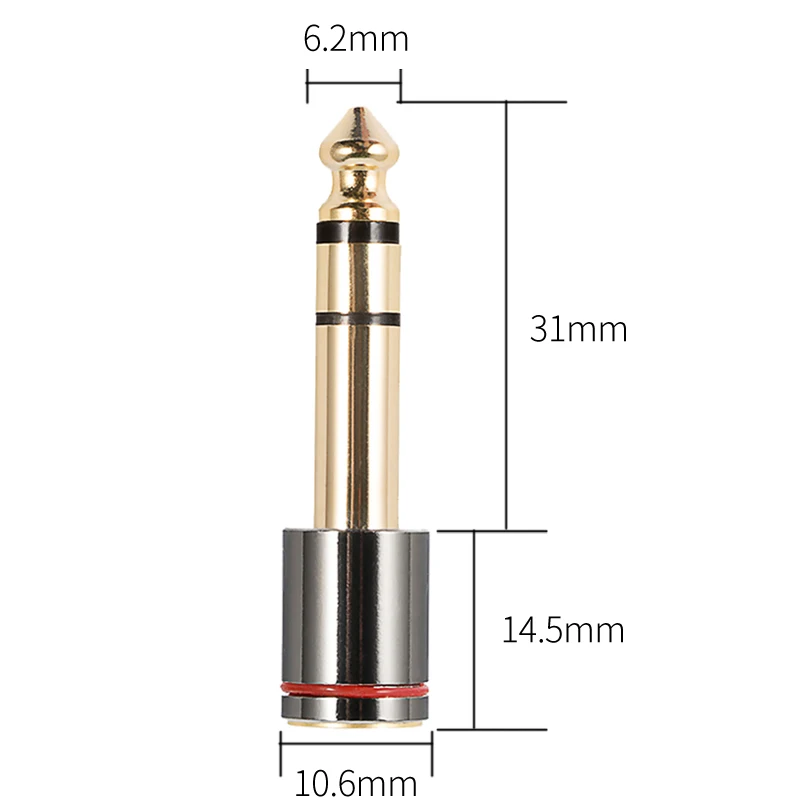 1. Название: 6,5 до 3,5 женский аудио адаптер 2. Материал: медь 3. Технология интерфейса: золотое покрытие 4. Тип разъема: 6,5 мм штекер 5. Интерфейс Тип: 3,5 мм Женский 6. Использование продукта: 6. 5 мм и 3,5 мм аудио интерфейс преобразования 7. Преимущества продукта: высокая точность передачи, удобный и прочный