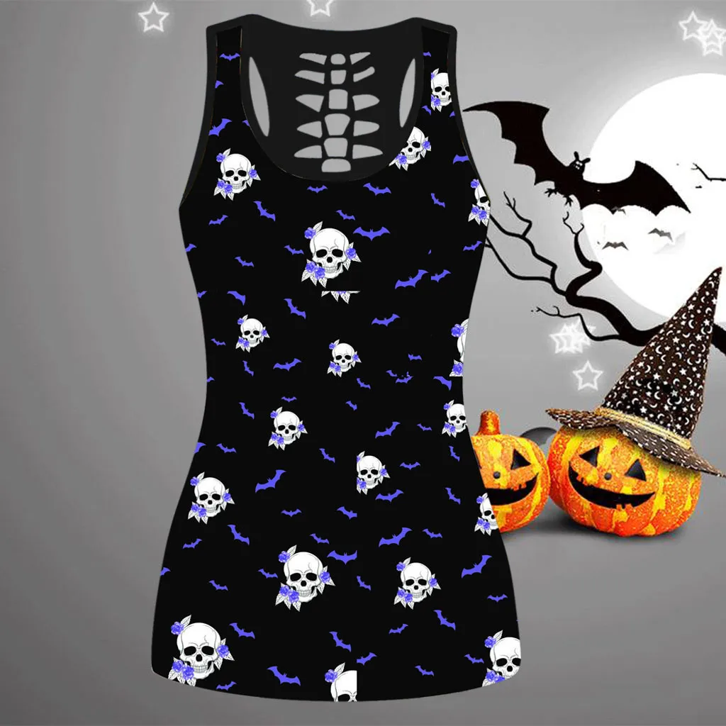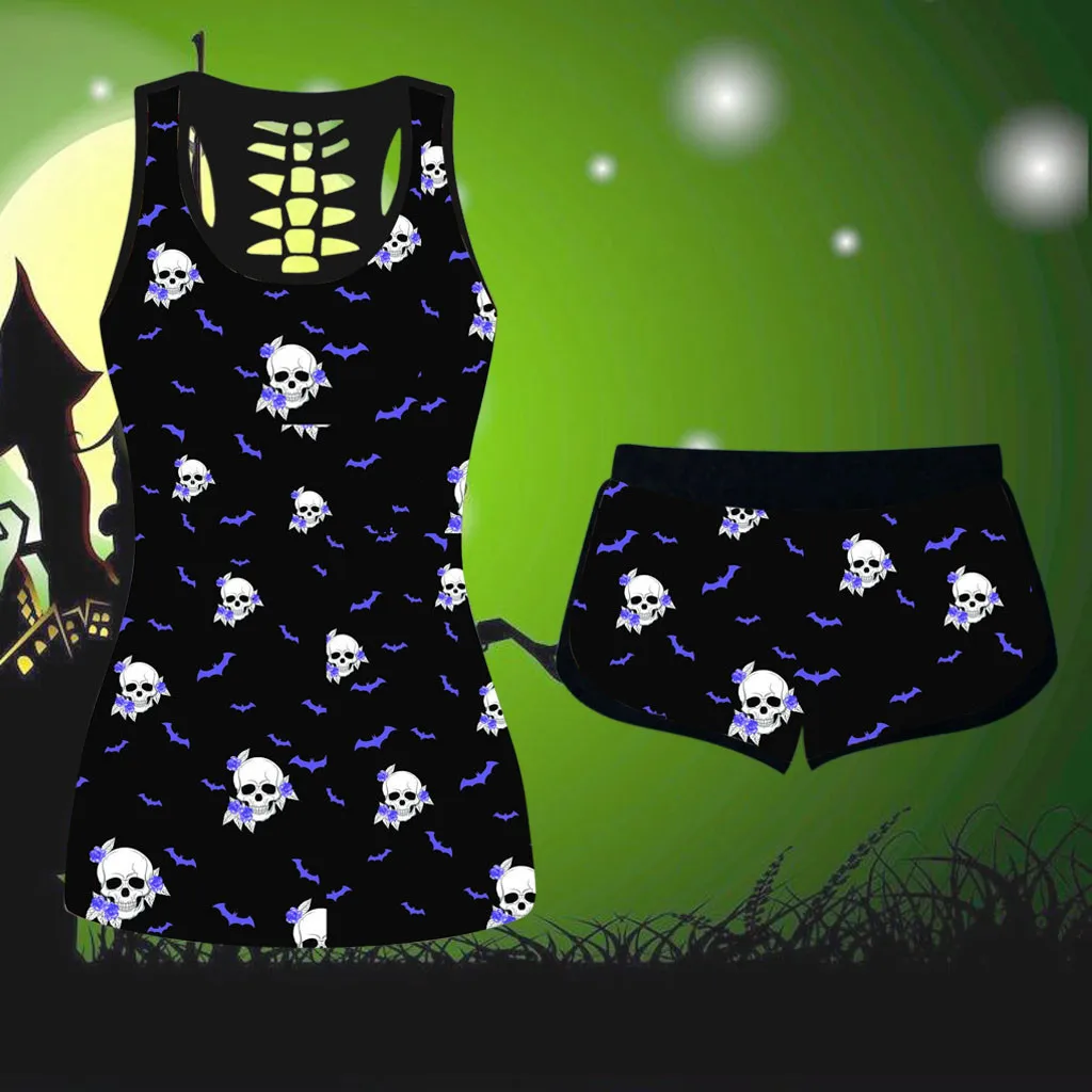 Женский Хэллоуин Принт без рукавов рубашки шорты набор