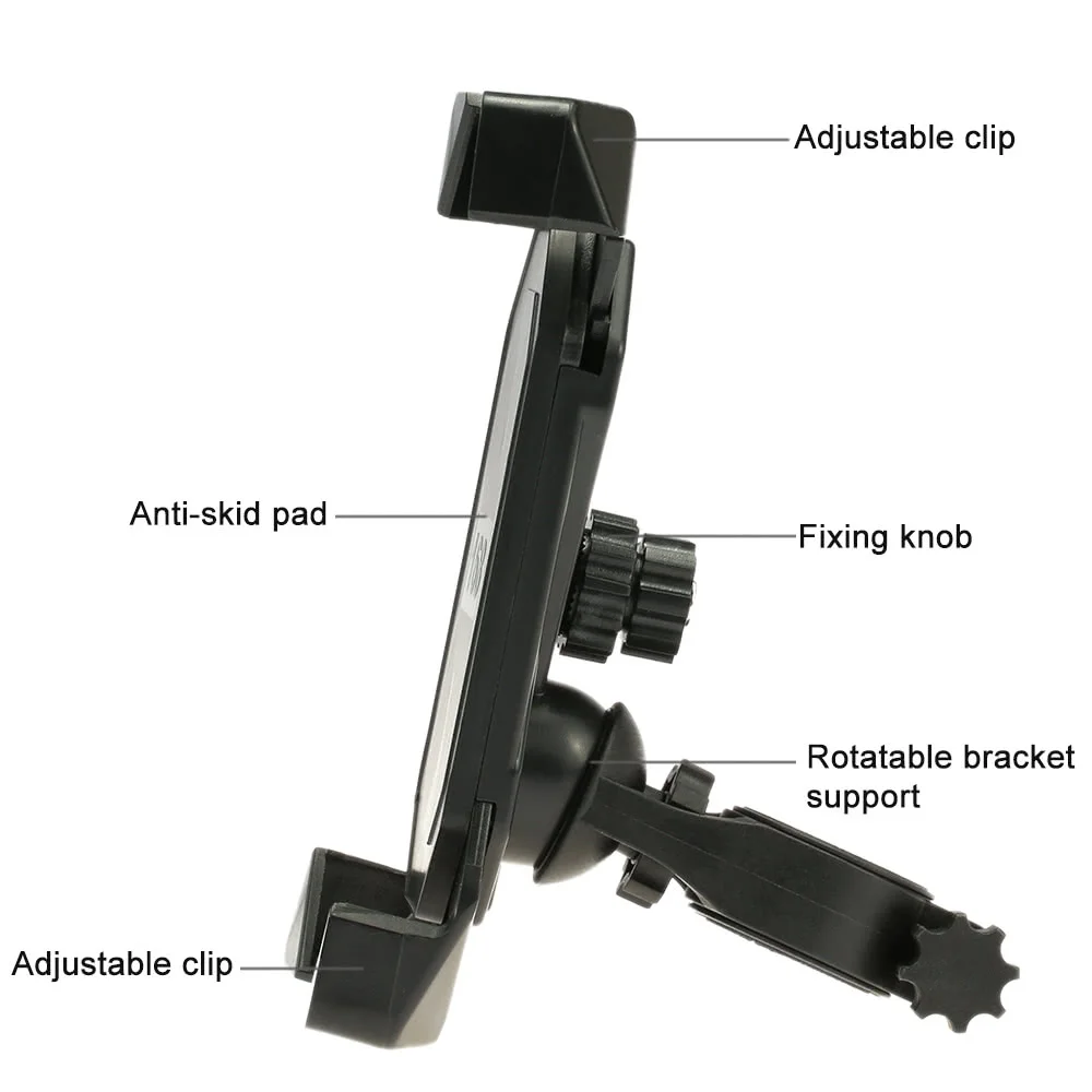 Крепление для телефона мотоцикла и велосипеда удивительно спроектировано, чтобы легко и быстро установить на любой руль велосипеда, и это отличный инструмент, который работает с любыми 3,5-7 дюймовыми смартфонами или gps-навигатором. Крепление имеет полностью вращающуюся кобуру, которая поворачивается и поворачивается на 360 градусов, чтобы вы могли просматривать ваше устройство горизонтально или вертикально.