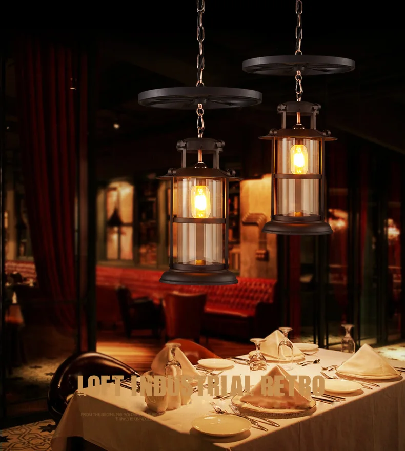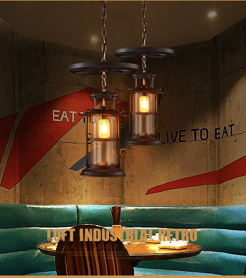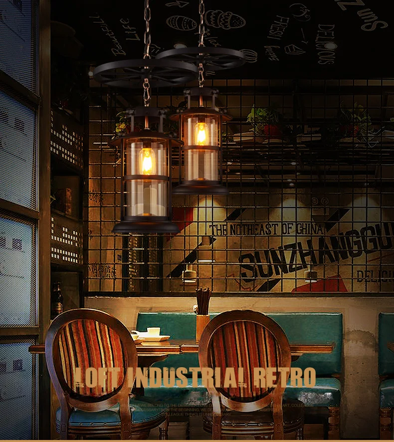 Ретро промышленная люстра с ветровым колесом, барный стол, кофейный ресторан, фонарь, креативная личность, железная одинарная деревянная фара
