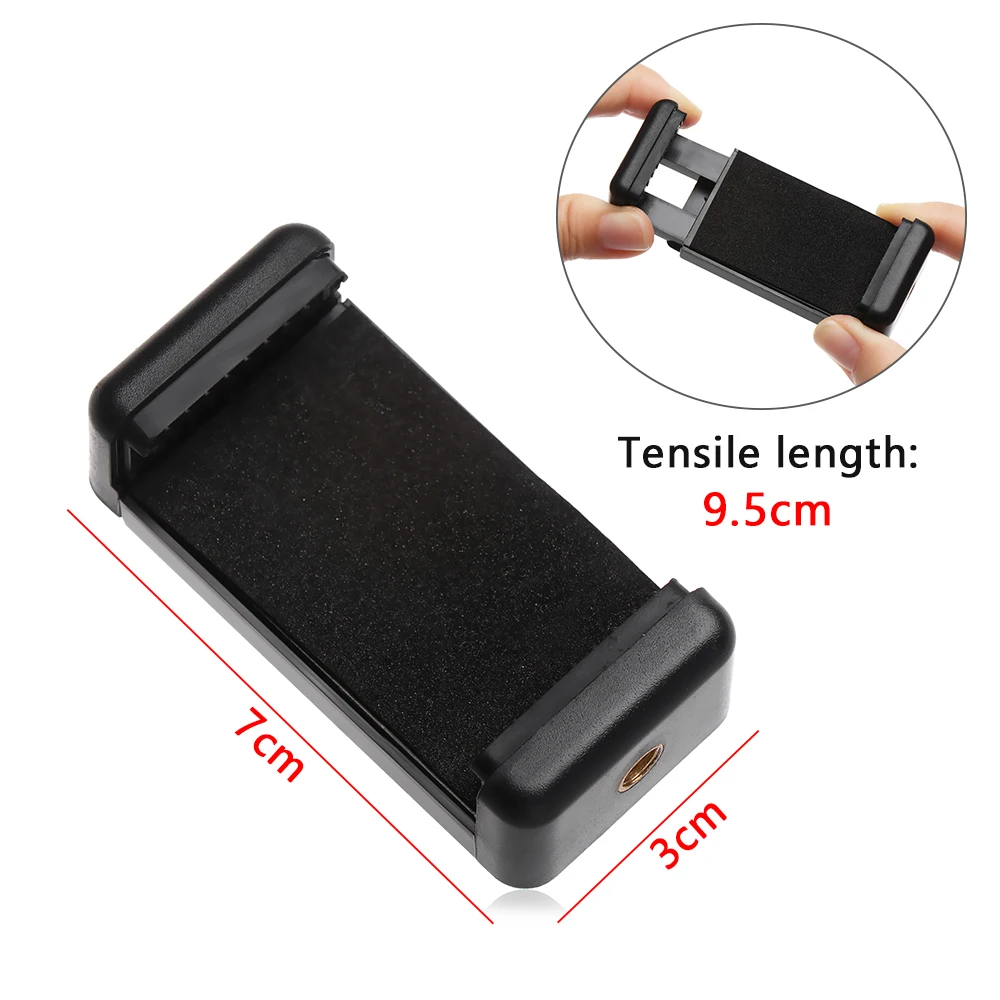 Совершенно новый и высокое качество. С превосходным качеством кронштейна для телефона, автоматический эластичный растягивающийся может закрепить sphone & Tablet. Стандартный винт позволяет устанавливать различные штативы (совместим со всеми стандартными штативами x20) Подходит для iPhone, BlackBerry, iPod Touch и даже для Samsung Galaxy Note phone. Легкий и компактный: легко носить с собой и путешествовать с Материал: АБС-пластик Цвет: черный U-образный зажим и плоский зажим подходит для: iPhone, Android мобильного телефона, может быть установлен в любой раме для ног Плоский зажим двойного назначения подходит для iPhone, планшетов Android, может быть установлен в любой раме для ног Допустимая ширина сотового телефона: 58 мм-90 мм Допустимая ширина планшета: 110 мм-185 мм (Примечание: только плоский зажим двойного назначения подходит для планшета, допускается погрешность 1-3 мм из-за ручного измерения) Посылка включает в себя 1 x держатель для телефона камеры