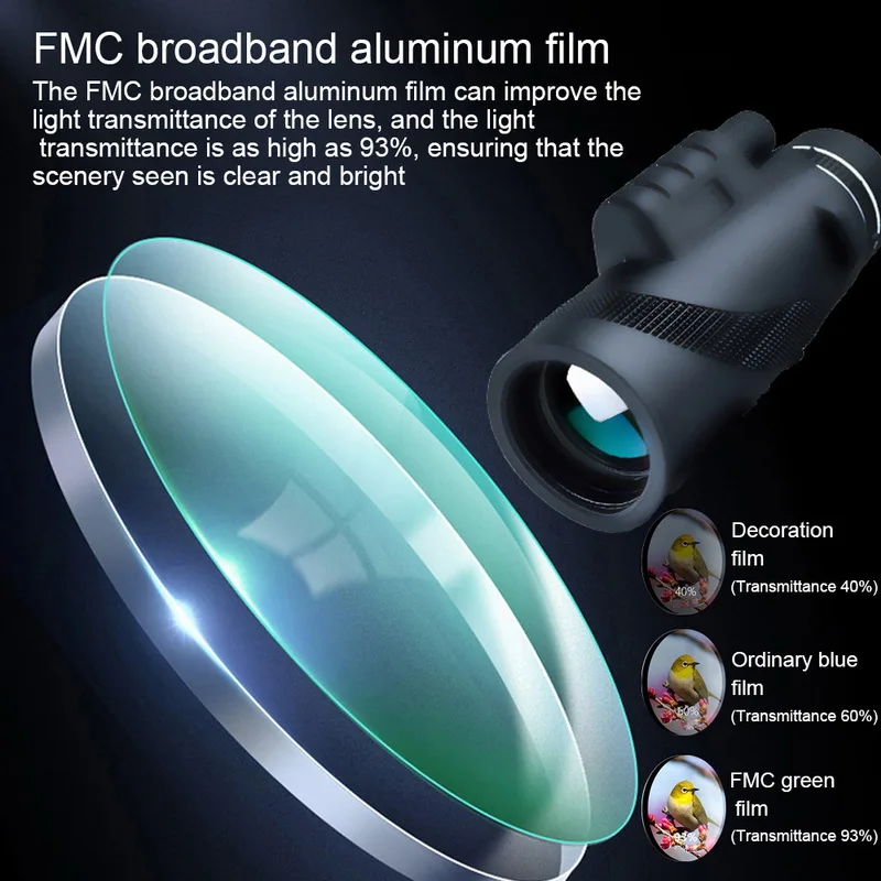 <40x60 Увеличение: 40 x увеличение и 60 мм Диаметр объектива Монокуляр обеспечивает четкое и яркое изображение, вы можете наслаждаться красотой расстояния.