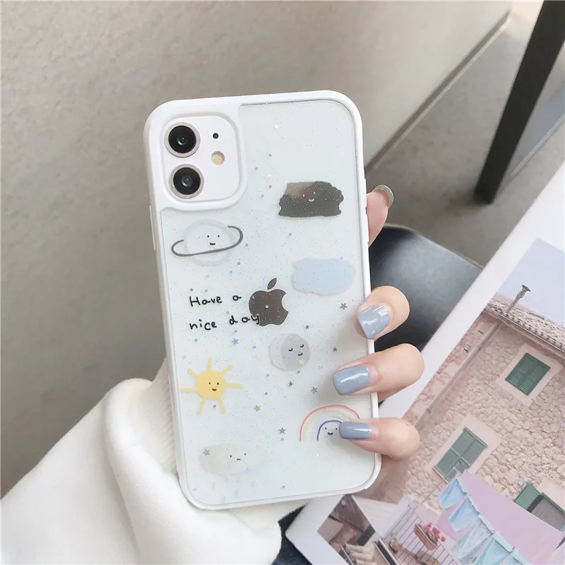 Милый блестящий чехол для телефона с изображением солнца Луны облаков звезд для iPhone