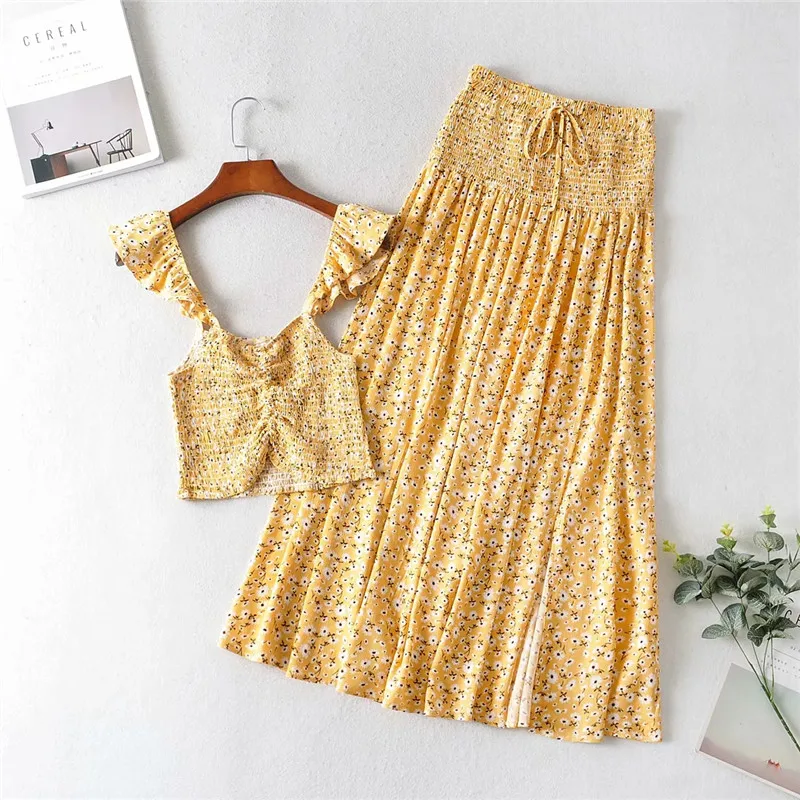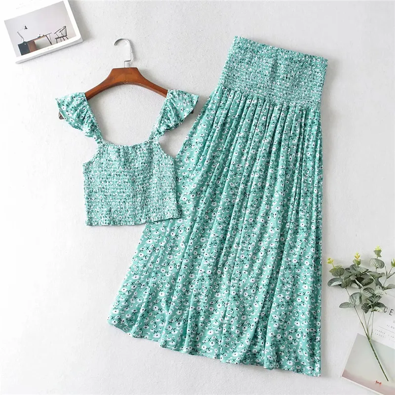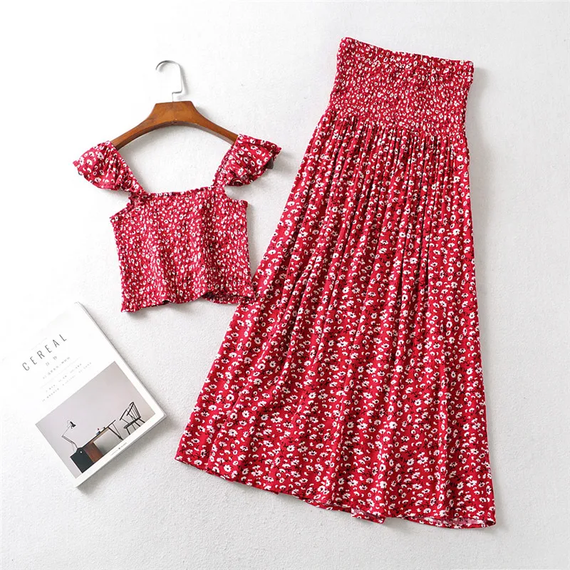 1 * женский топ с цветочным принтом + юбки 2 шт.