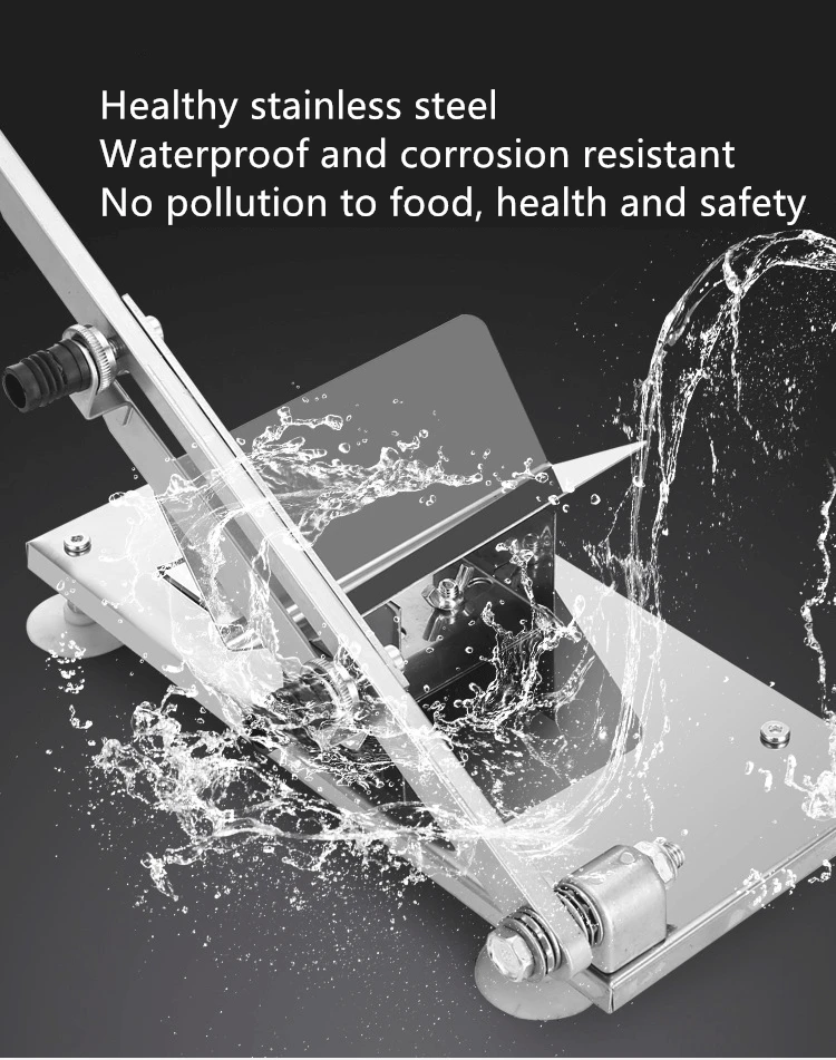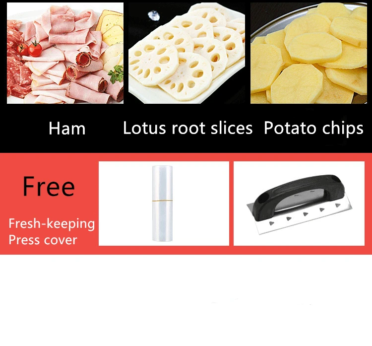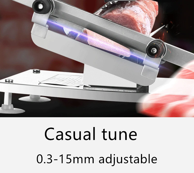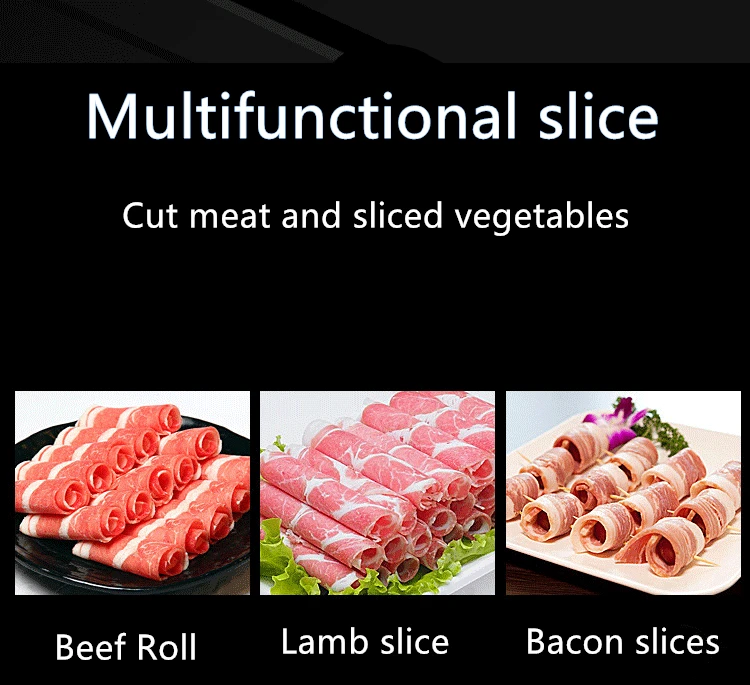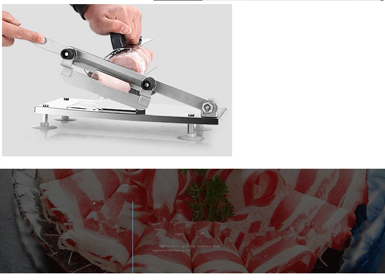 Слайсер для мяса: вы можете самостоятельно отрегулировать толщину ломтика. Машина изготовлена из нержавеющей стали, лопастей из вольфрамовой стали, острых и прочных лезвий, v-образной формы паза, может резать рулоны ягненка, ломтики картофеля, огурец, корень лотоса, редис и т. д. Здоровая нержавеющая сталь Водонепроницаемый и устойчивый к коррозии Отсутствие загрязнения для пищевых продуктов, здоровья и безопасности Двойные подшипники экономят усилия Сильная присоска более стабильная 4 большие нескользящие присоски из ПВХ для предотвращения тряски и безопасности Проколотая Крышка для мяса Не скользит, не повреждает руки Использование: 1. Требования к замороженному мясу: если вы хотите нарезать и нарезать рулоны, вы должны заморозить его в холодильнике более 48 часов, и вы можете разрезать его прямо из холодильника. Мясо должно быть заморожено твердым, помещено на дно морозильной камеры или на боковой стороне морозильной камеры и не может быть помещено в морозильную камеру случайно, В противном случае будет трудно разрезать, если твердость не достигается. 2. Правая рукоятка ножа должна двигаться вертикально вверх и вниз. Он не может ломаться влево (в направлении мяса) во время движения, в противном случае нож будет деформирован или появится зазор. 3. После каждого использования и очистки, пожалуйста, протрите лезвие сухим. Если вы не используете его в течение длительного времени, пожалуйста, нанесите растительное масло на лезвие перед хранением. 4. Регулировка толщины: Регулировка прокладки, регулировка занимает всего 10 секунд один раз, поверните коготь винт, затем поместите прокладку в, поместите такое же количество прокладок вверх и вниз, диапазон регулировки 0,2-20 мм