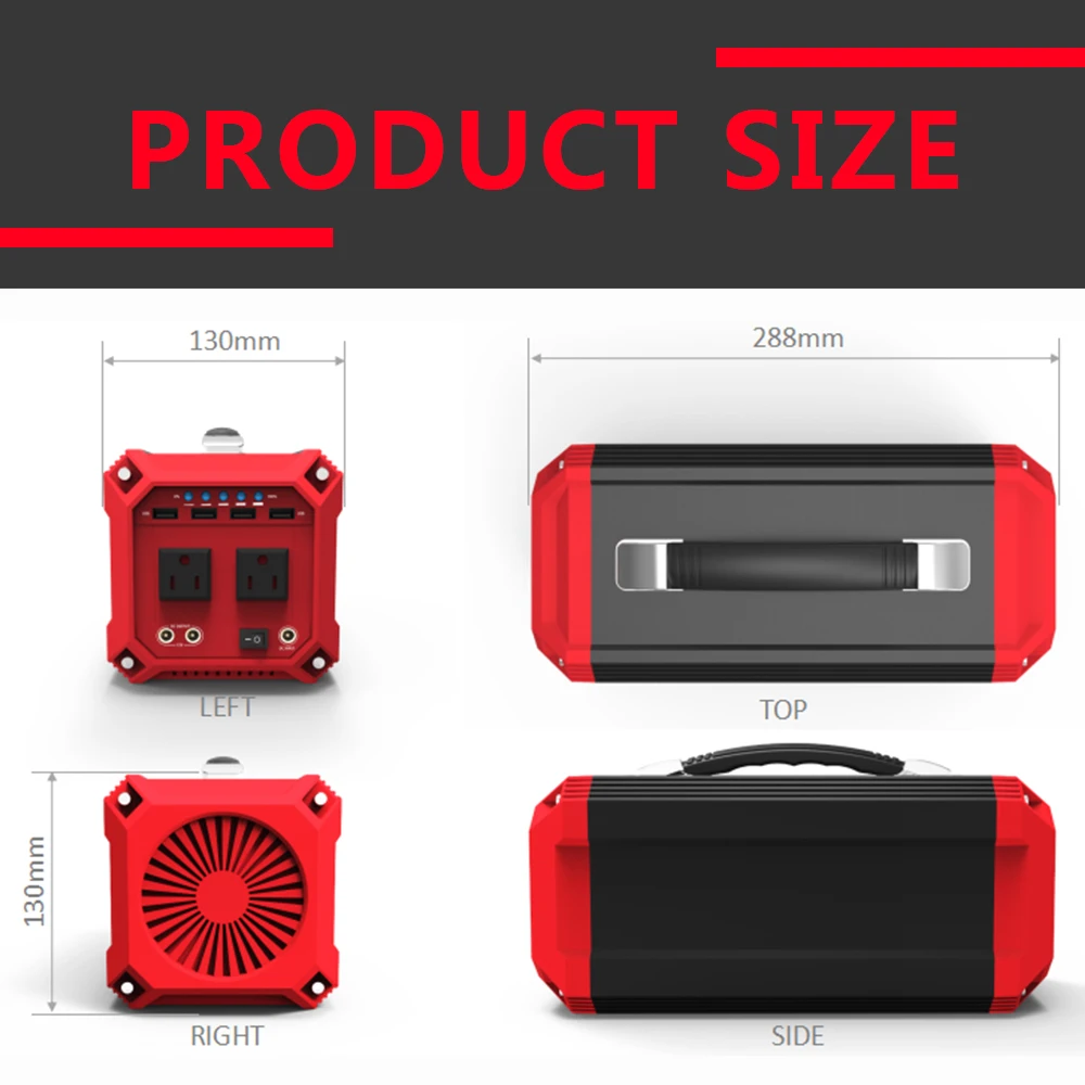 ◆MODEL:HD300 Размер: 288*130*130 мм ◆Емкость: 73000 мАч (270Wh) ◆Output: 1)2 x выход постоянного тока 9 ~ 12V/15A Max 2)2 x непрерывный выход переменного тока: 300 Вт 3) 4xusb 5V/2.1A ◆Входная Зарядка: адаптер DC15V/4.5A ◆Вход солнечной панели: 11,6 V ~ 24V/4.6A Max Время полной зарядки: около 6 часов ◆Рабочая температура:-20 ℃ ~ 85 ℃ ◆Warranty:12 месяцев ◆Item: Мощность паяльная станция ◆Место происхождения: Гуандун, Китай ◆Размер: 288*130*130 мм ◆Weight: 3,3 кг ◆Срок службы: 1000 +