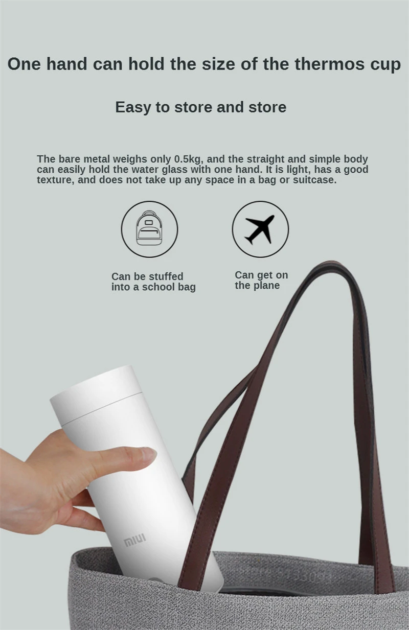С помощью портативной электрической нагревательной чашки MIUI вы можете кипятить воду в теле в любое время и в любом месте (от тепла желудка до сердца), регулировать температуру воды, стараться сохранять тепло, И пить теплую и здоровую воду
