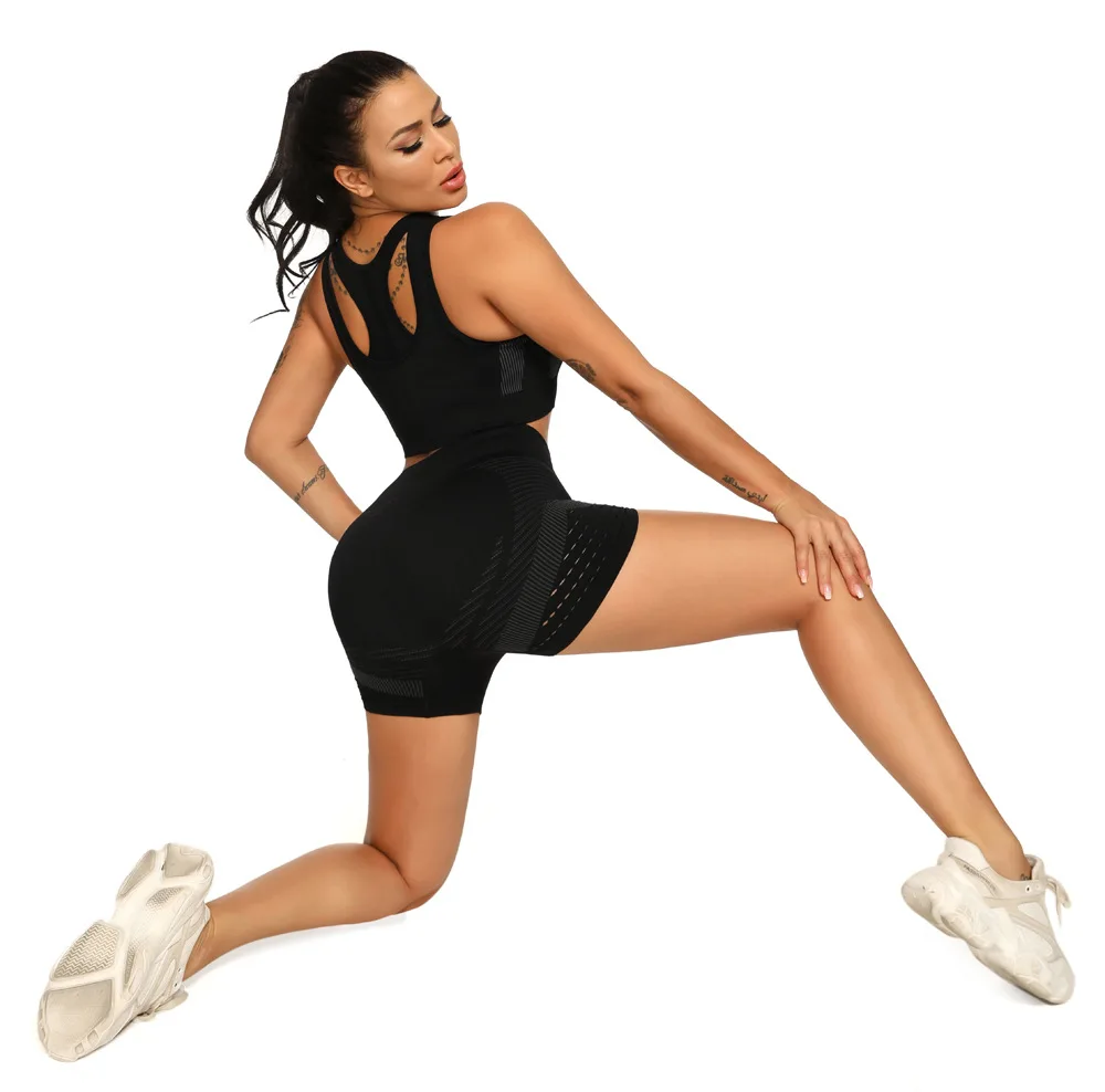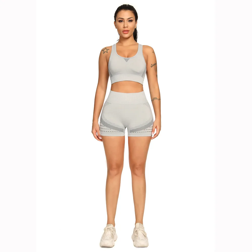 Бесшовные комплекты для йоги, фитнес, спортивный комплект, майка, укороченный топ, шорты, спортивный костюм для женщин, пуш-ап, для занятий спортом, для бега, спортивная одежда, наряды