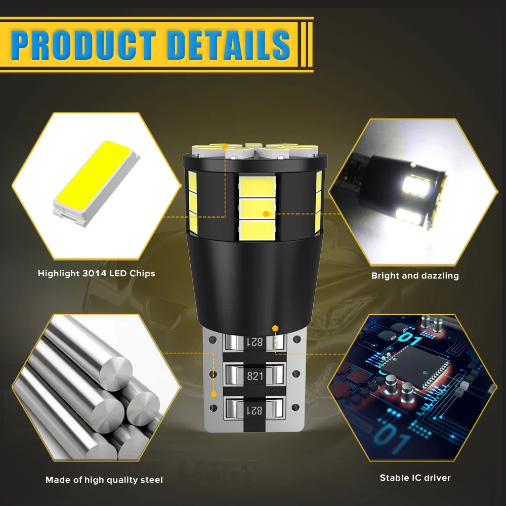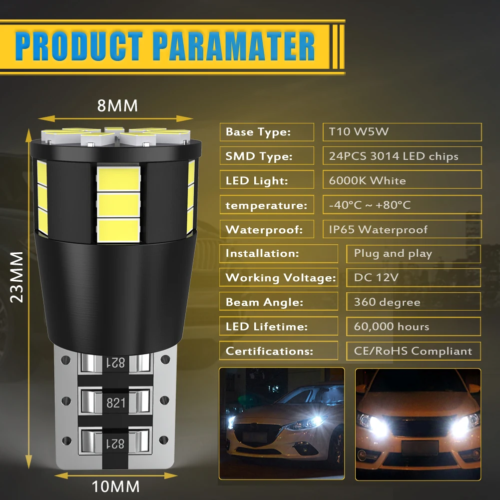 1. Перед размещением заказа убедитесь, что ваша розетка T10. 2. Упаковка: 4 шт. светодиодный T10 лампа