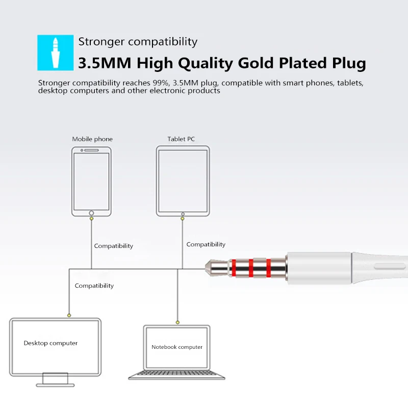 Совместимость: 3,5 мм стандартный вспомогательный разъем совместим со смартфонами, Планшеты, MP3 и почти все 3,5 мм аудио устройств.