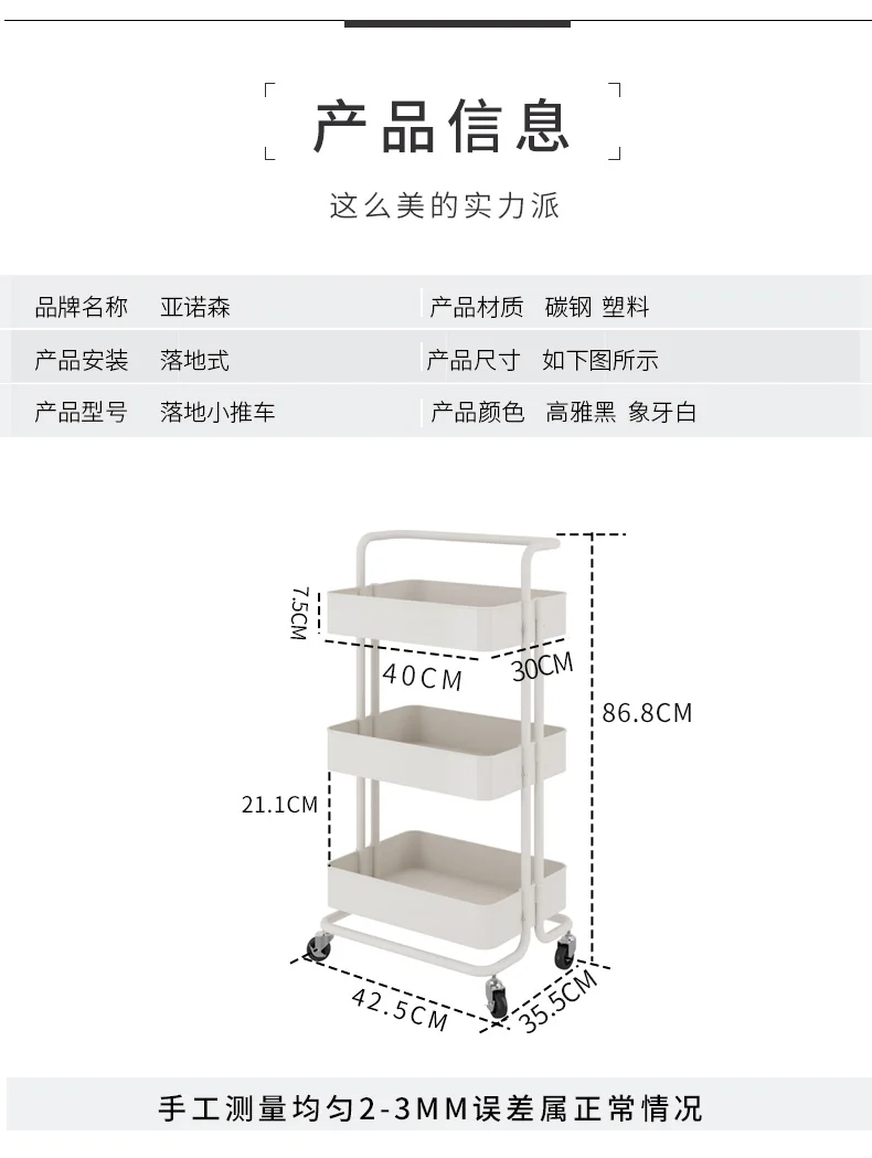 Роскошная организация-эта тележка используется для удобного хранения и транспортировки как инструмент тележка, Сервировочная Тележка, стеллаж для кухни, гаража, ванной комнаты, спальни, двора, столовой, дома Офис и т. д • Удобный ход-4 колеса прочные и гладкие для перемещения в любом месте • Легко чистить-этот стеллаж Легко протирается мягкой тканью Продукт Параметры: • Размер изделия: L42, 5 см x W35, 5 см x h86,8 см • Вес: 4 кг