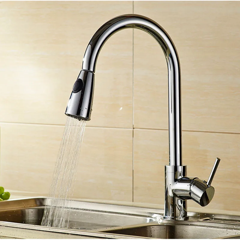 Одноручный высокодуговой матовый никелевый выдвижной кухонный кран, одноуровневая кухонная раковина из нержавеющей стали, смесители для кухонной раковины с выдвижной опрыскивателем