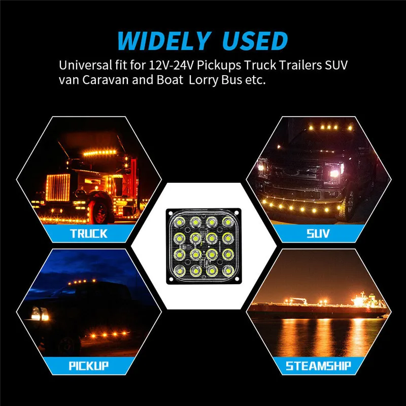 * Режим вспышки: сильная и слабая вспышка * Для автомобилей, мотоциклов, грузовиков, кораблей * Режим: сисветильник/сласветильник/взрыв * Размер: приблизительно 85*85 мм * Тип Розетки: 3 провода * Количество светодиодов: 16 * Напряжение: 12 В-24 В постоянного тока * Цветовая температура: 6500k * Мощность источника света: 16 Вт * Срок службы: 50000 часов * Подходит для автомобилей, грузовиков, мотоциклов, прицепов и других автомобилей 12 В * Проводное Соединение: черный провод для отрицательного и красный провод для позитивного