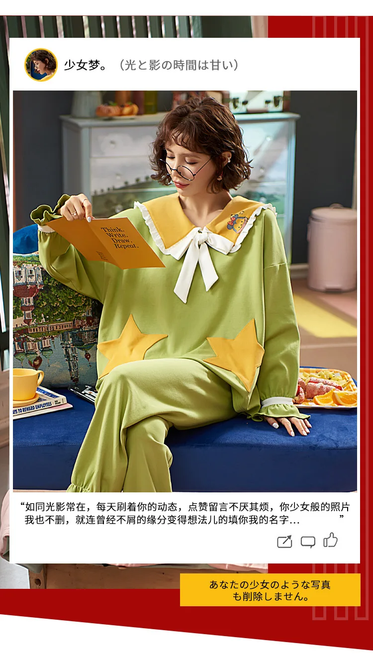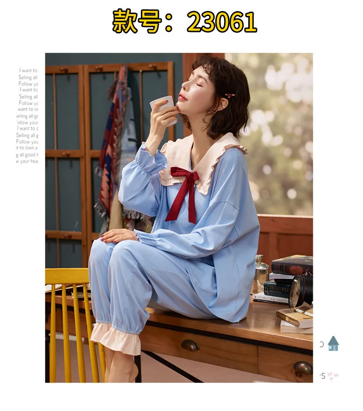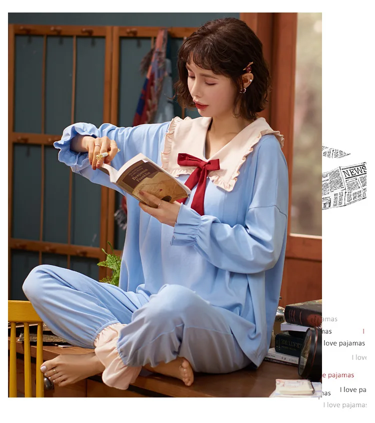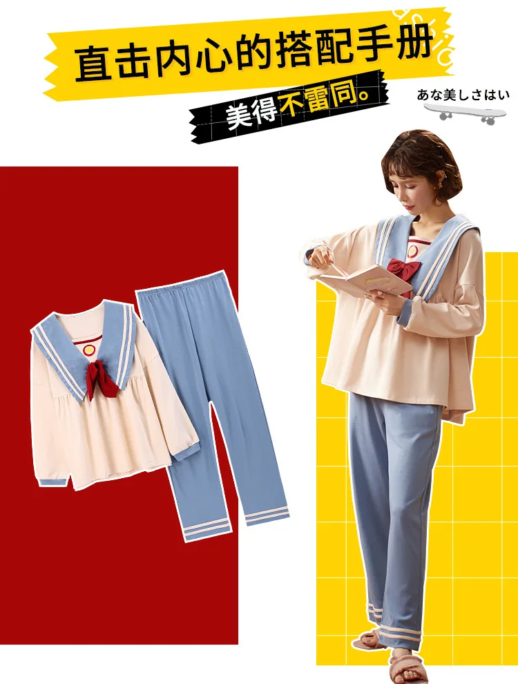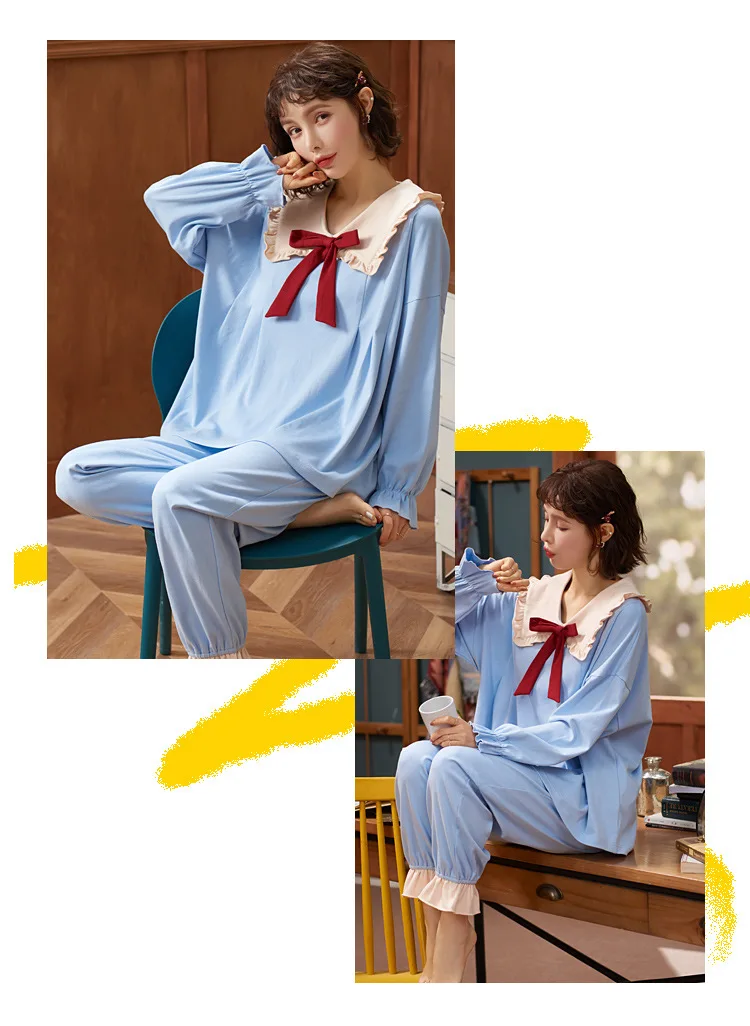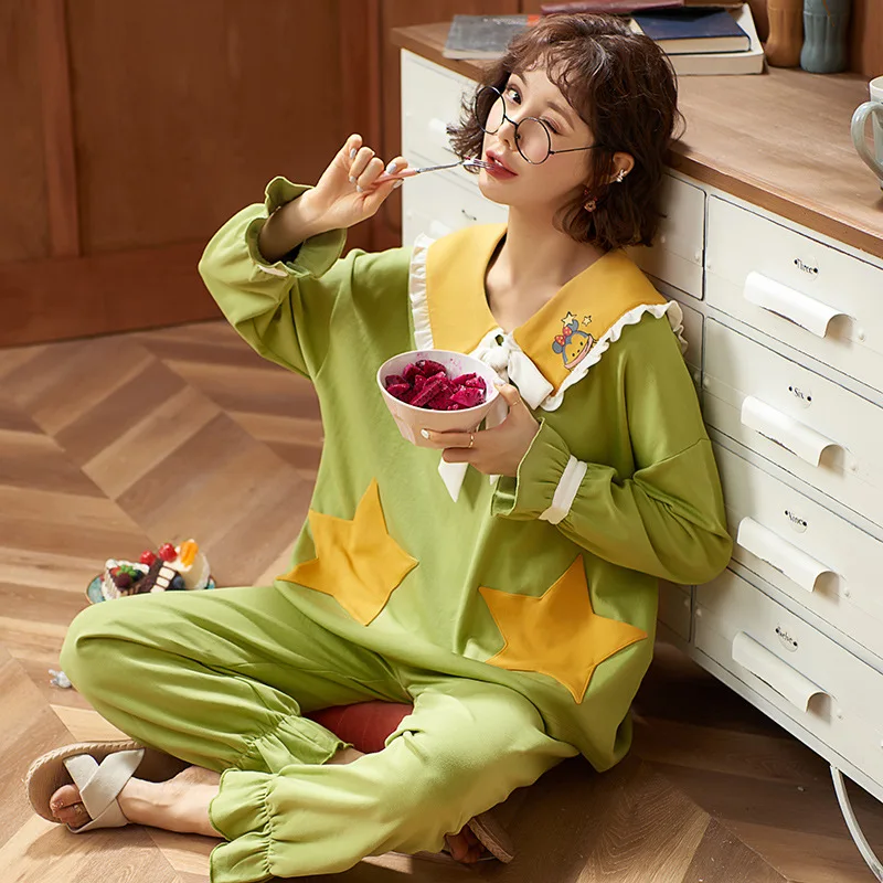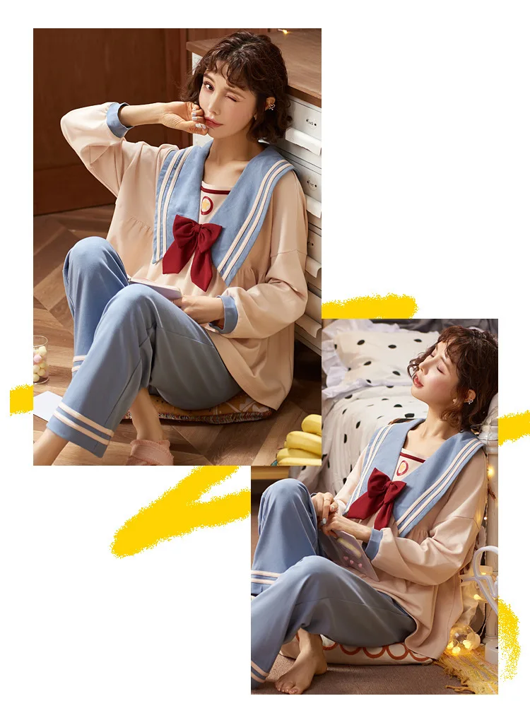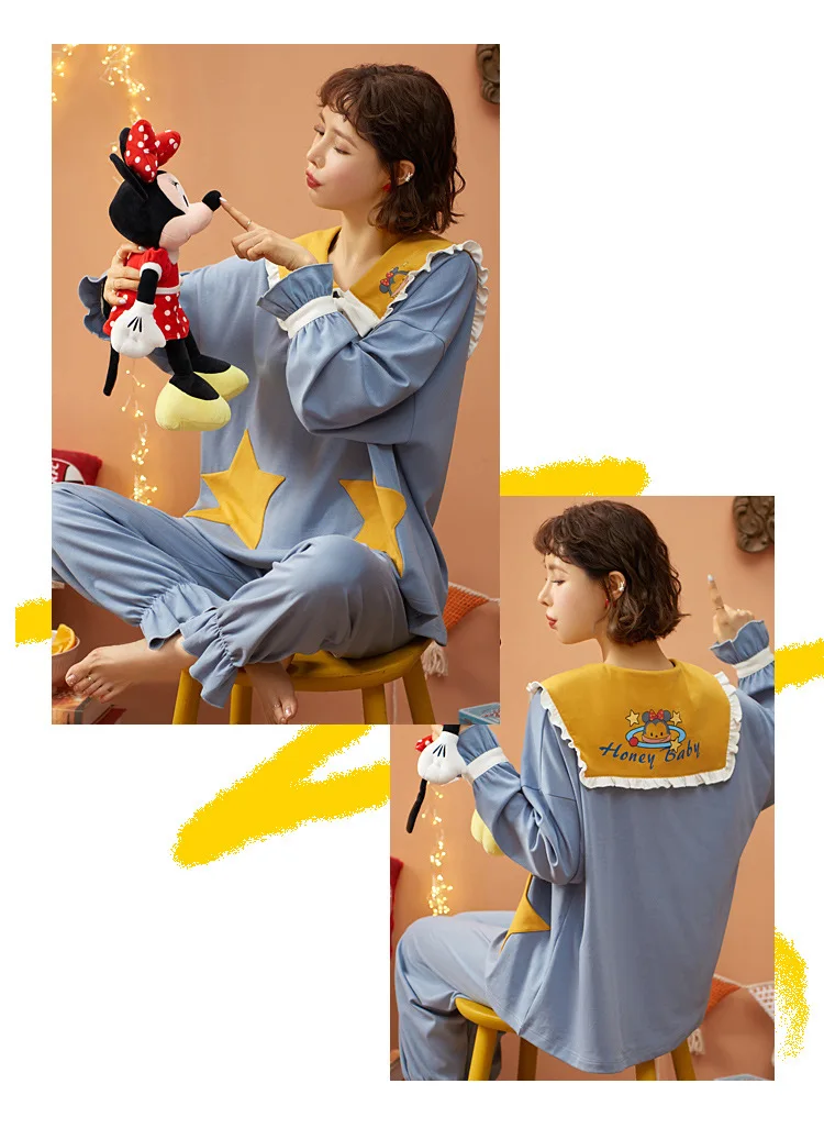 Пижама с длинными рукавами, Женский весенне-осенний кардиган из чистого хлопка в Корейском стиле, милый осенне-зимний домашний костюм из двух предметов с героями мультфильмов, можно носить снаружи