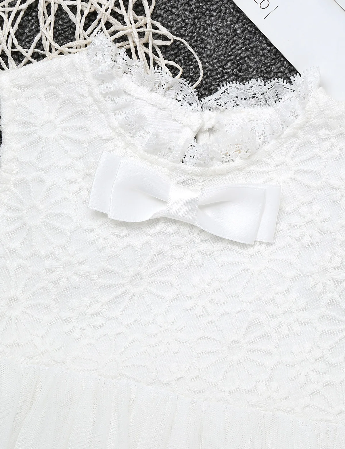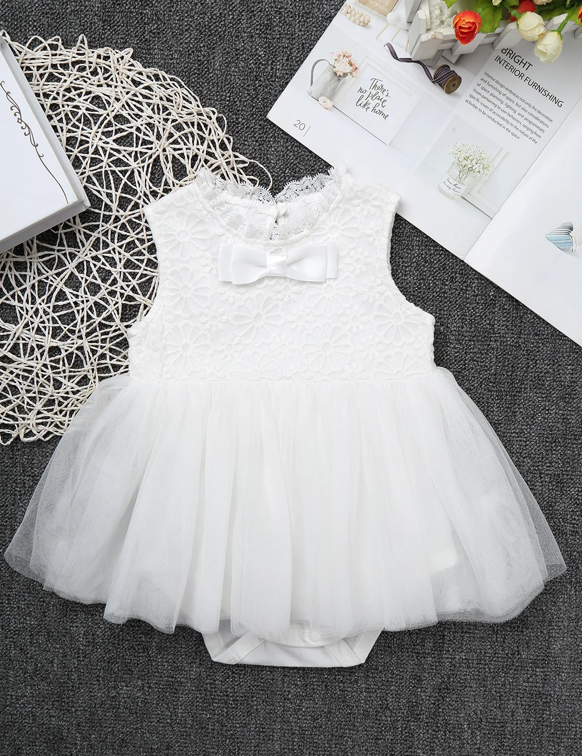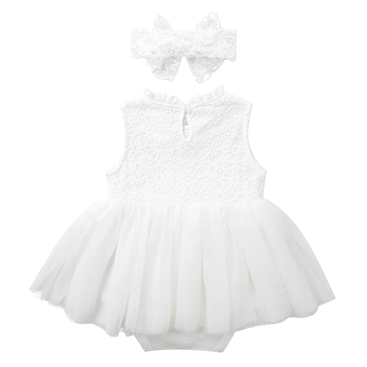 Кружевное платье-пачка из тюля без рукавов с вышивкой для маленьких девочек, платье с бантом, повязка на голову для дня рождения, крещения, праздника, праздника