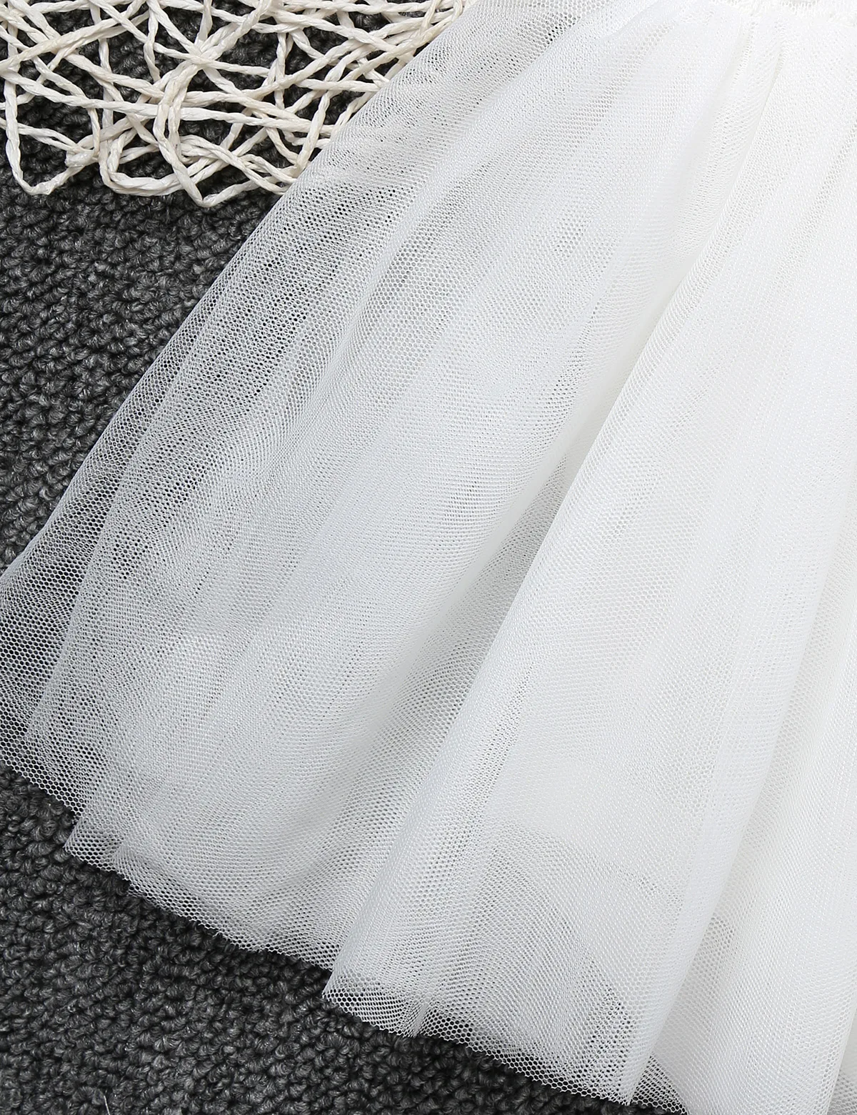 Наряд изготовлен из полиэстера, тюля и кружевного материала, ручная стирка в холодной воде.