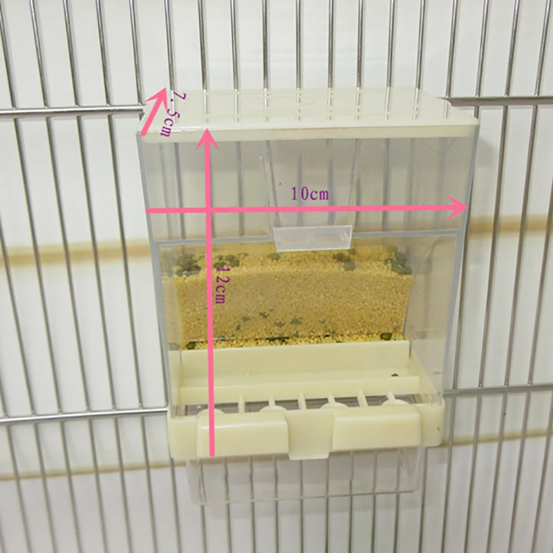 1. Идеальный Размер: 12 см * каблук 10 см * 7,5 см, может быть введена в о 400 г семян. Пожалуйста, измерьте дверь кормушки, чтобы убедиться, что кормушка для семян подходит для использования в клетке.