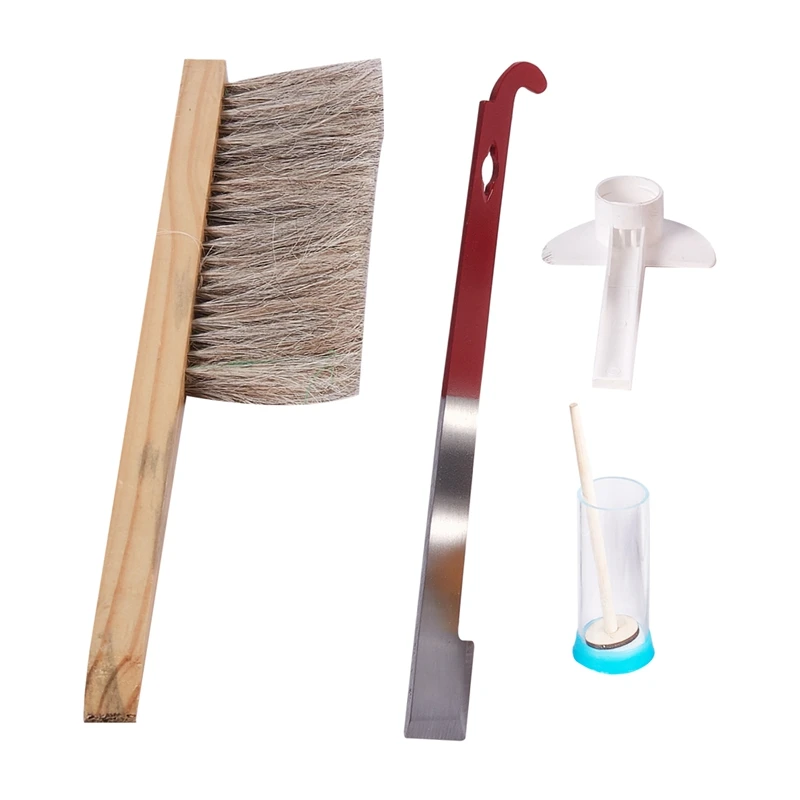This is a 10 in 1 beekeeping tool kit, a complete overall tool pack that covers your Beekeeping work. Includes Chisel, Bee Brush, Wheel Wire Embedder, Frame Grip, Queen Marking Tool.