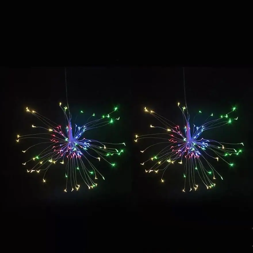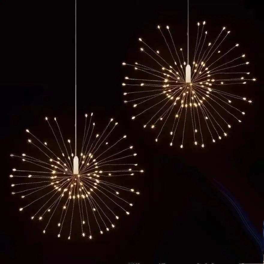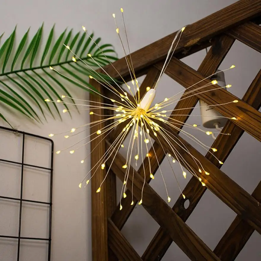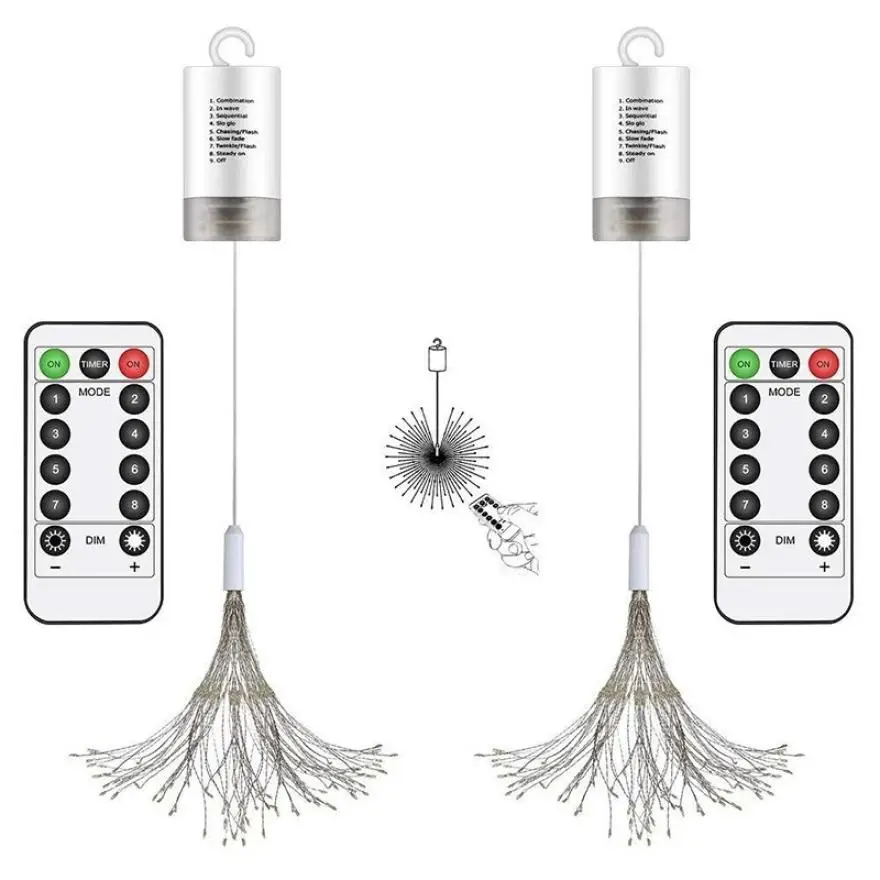 Название продукта: светодиодный светильник для фейерверков Материал: АБС-пластик + медная проволока + светодиодный светильник Светильник; Цвет: теплый белый, многоцветный Размер аккумуляторной коробки: около 10,9 см * 4,4 см Светильник Технические характеристики: 100LED/4LED × 25 шт.: около 15 см 120LED/3LED × 40 шт.: около 28 см 150LED/3LED × 50 шт.: около 28 см 180LED/3LED × 60 шт.: около 28 см Батарея: 4 * батарейки AA (не входят в комплект) Пульт дистанционного управления: 1 * CR 2032 (не входит в комплект) Водонепроницаемый: IP65 Вес: около 85 г/95 г/102 г/110 г В посылка включает в себя: 1 шт. * Светильник 1 шт. * пульт дистанционного управления