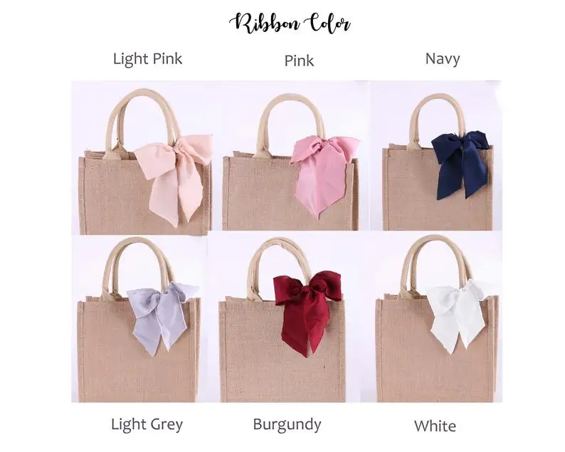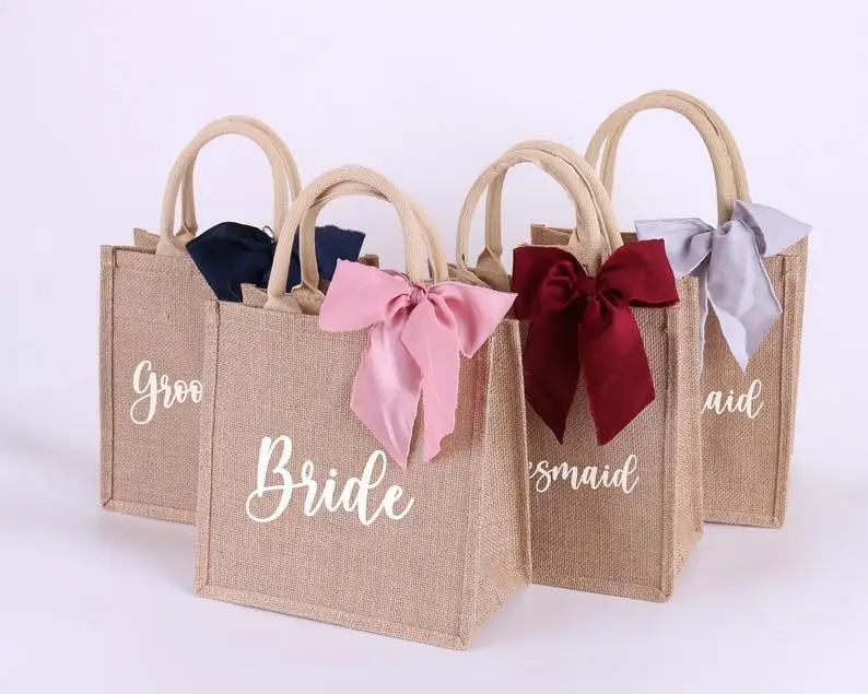 Это для 6 и более персональный брезент сумки. Напечатанный на заказ текст в красивом шрифте и поставляется с потертым бантом из ленты, они сделают отличный подарок для свадьбы, девичника вечерние, свадебный душ, quinceanera или день рождения ночевки, И т. д.
