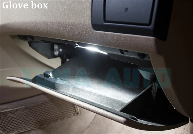 Trunk - 3x Front Foot Well - 2x Rear Reading Lights - 2x Front Dome - 3x Glove - 1x Vanity Lights - 2x Spare bulb-3x