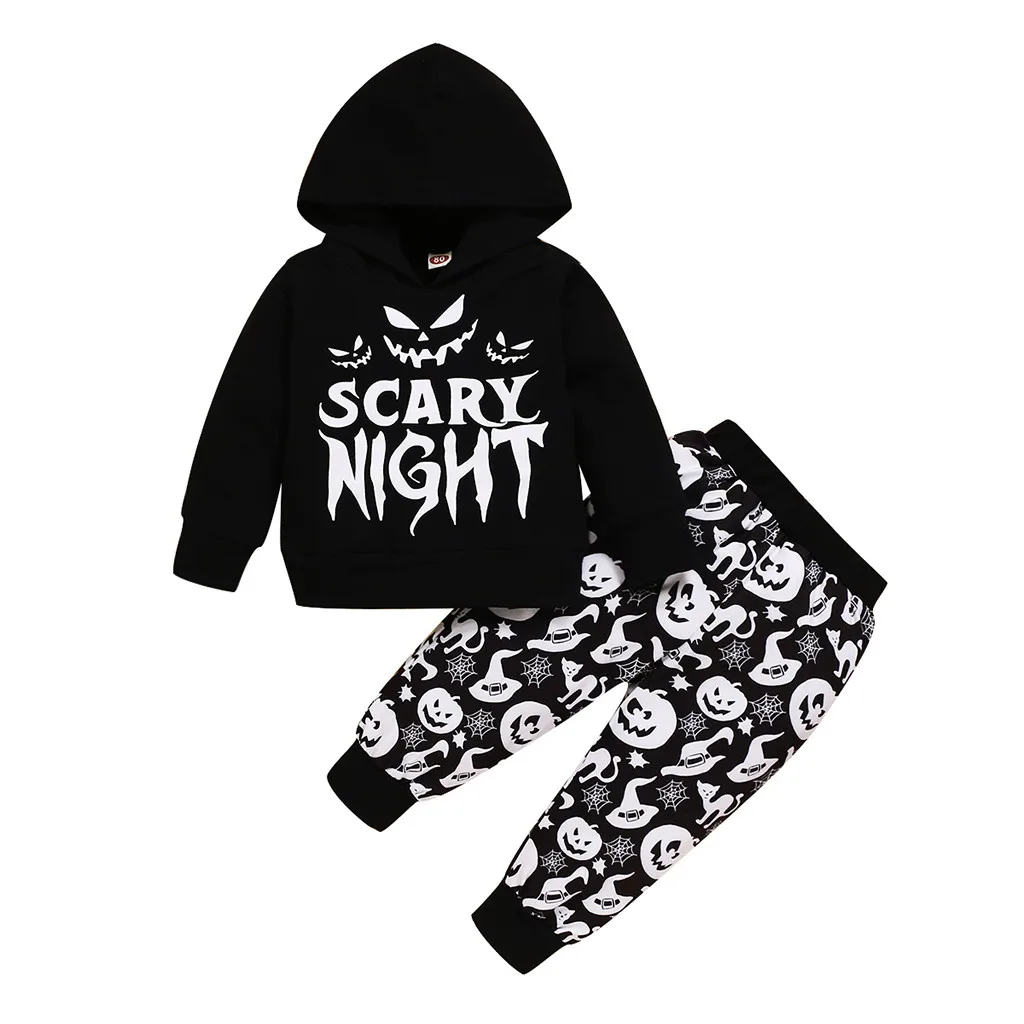 Комплект одежды для новорожденных мальчиков и девочек на Хэллоуин: толстовка с капюшоном + штаны