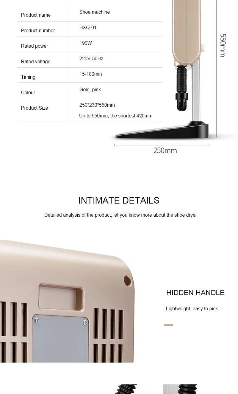 The body is light and convenient, and can be adjusted up and down. When the high boots are baked, the air duct can be stretched out and the warm and dry shoes can be easily relaxed.