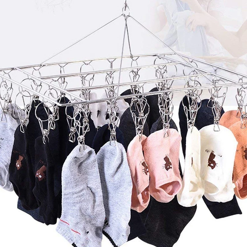 3. Высокое качество: сверхпрочная 4 мм Толстая рама из нержавеющей стали, прочная, ветронепроницаемая, долговечная. Зажимы надежно удерживают и легко снимают. Эта сушилка для одежды обеспечит вам идеальное место для подвешивания носков, бюстгальтеров, чехлов для подгузников, полотенец, нижнего белья, шарфов, трусиков, перчаток, носовых платков, детской одежды, И другой светильник, деликатный, когда они высыхают.