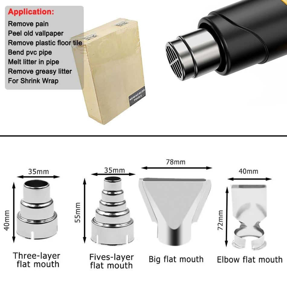 Для обеспечения безопасной эксплуатации пистолета горячего воздуха, мы разработали специальную защиту от перегрузки для каждого продукта, чтобы предотвратить его от пожара или опасности из-за чрезмерной температуры.