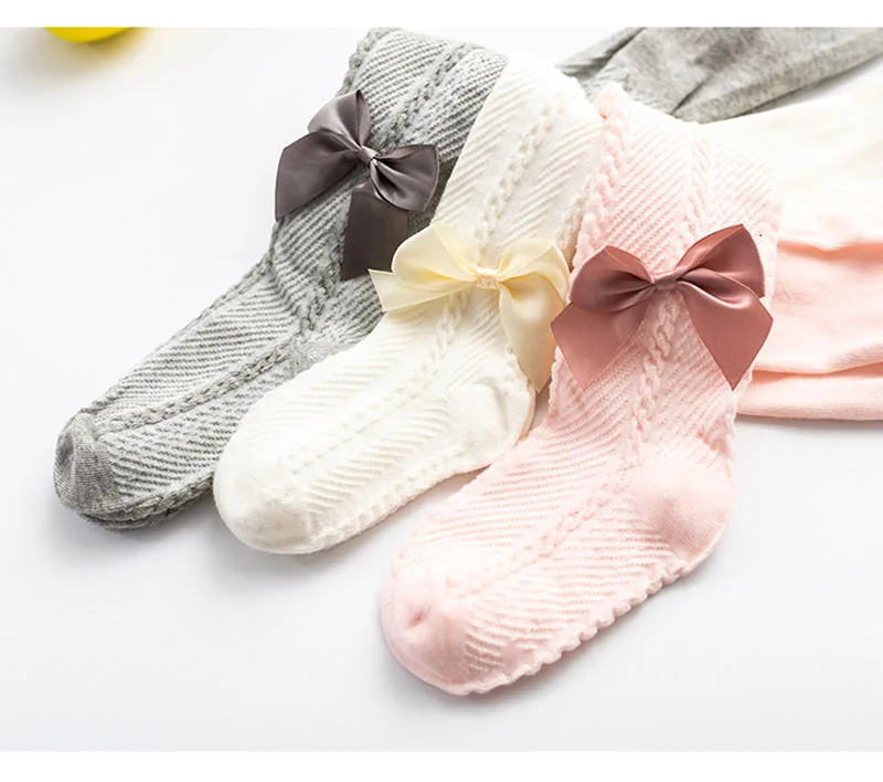 Модные колготки с бантом для девочек, тонкие сетчатые летние колготки, милые розовые мягкие хлопковые колготки для новорожденных, для детей 0-6 лет