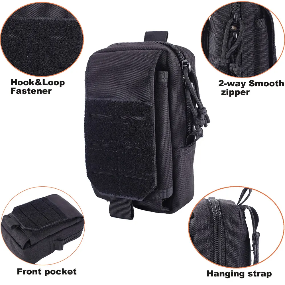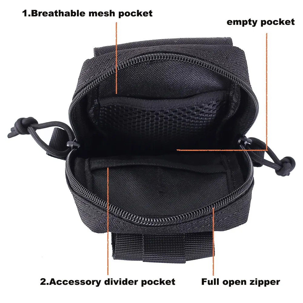 -- Хорошо сделано. Изготовлен из прочного нейлона 1000D. Компактный Размеры: 10 см (L) x 5 см (Ш) x 17 см (H) 3,93x1,97x6,7 дюйм (ов). -Несколько карманов. 1 передний карман, 1 основное отделение (с сетчатым слоем, один основной слой и один маленький слой) для небольших гаджетов. -- Система Molle. Чехол имеет прочные петли для ремня на задней части, износостойкое и тяжелое ношение. Ремни с пряжкой на задней части могут быть прикреплены к тактическому рюкзаку, боевому жилету, поясу или другим тактическим шестеренкам в качестве дополнительного внешнего мешка или носить его как обычный мешочек для безопасности основных передач. -Multi-purpose.An идеальный органайзер для сотового телефона, тактической ручки, брелка, gps-устройства, цифровых камер, медицинских принадлежностей, патронов, паракордов или любых необходимых гаджетов. -- Универсальный чехол. Разработан как тактическая Сумка molle, также может использоваться как маленький мешочек для повседневного использования, военный мешочек, армейский мешочек, мешочек для гаджетов, мешочек для поясного ремня. Подходит для кемпинга, пеших прогулок, активного отдыха, треккинга, рыбалки и т. д.