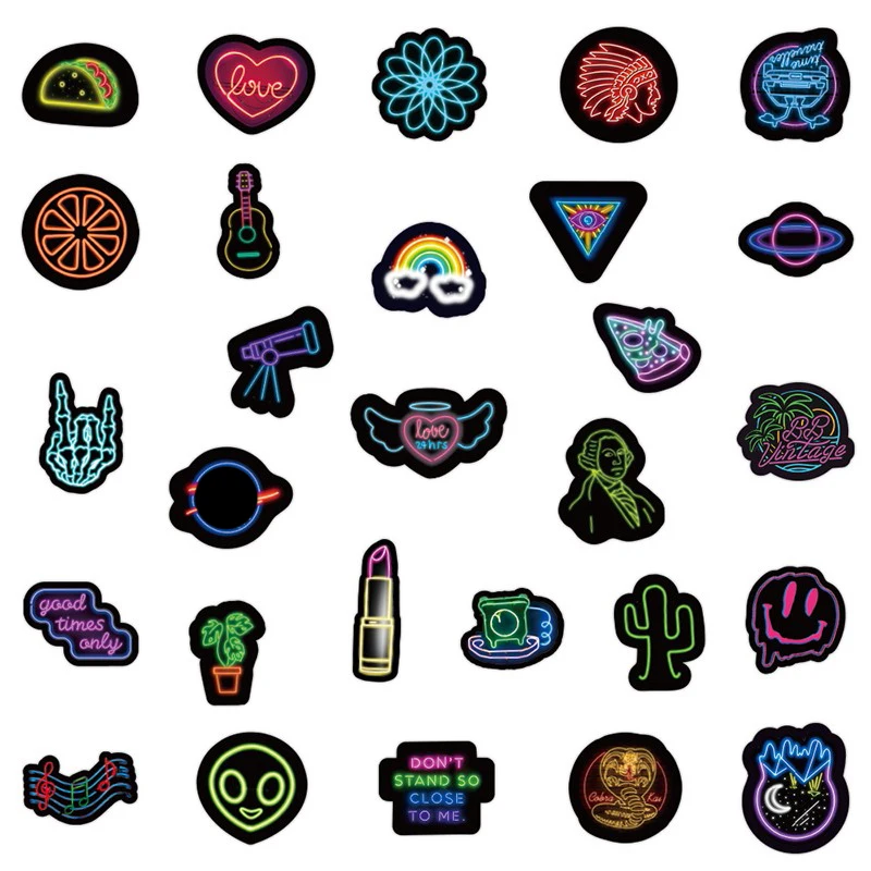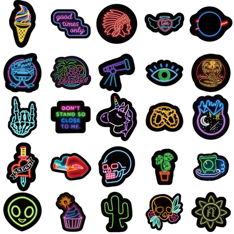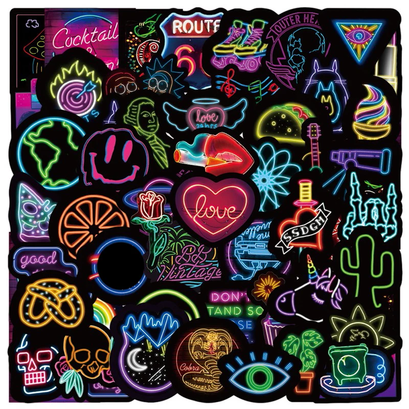Show more50 PCS skateboard Stickers for Children kids Neon Light Sticker Gifts Toys Anime Decals Laptop Phone Suitcase Guitar Phone set