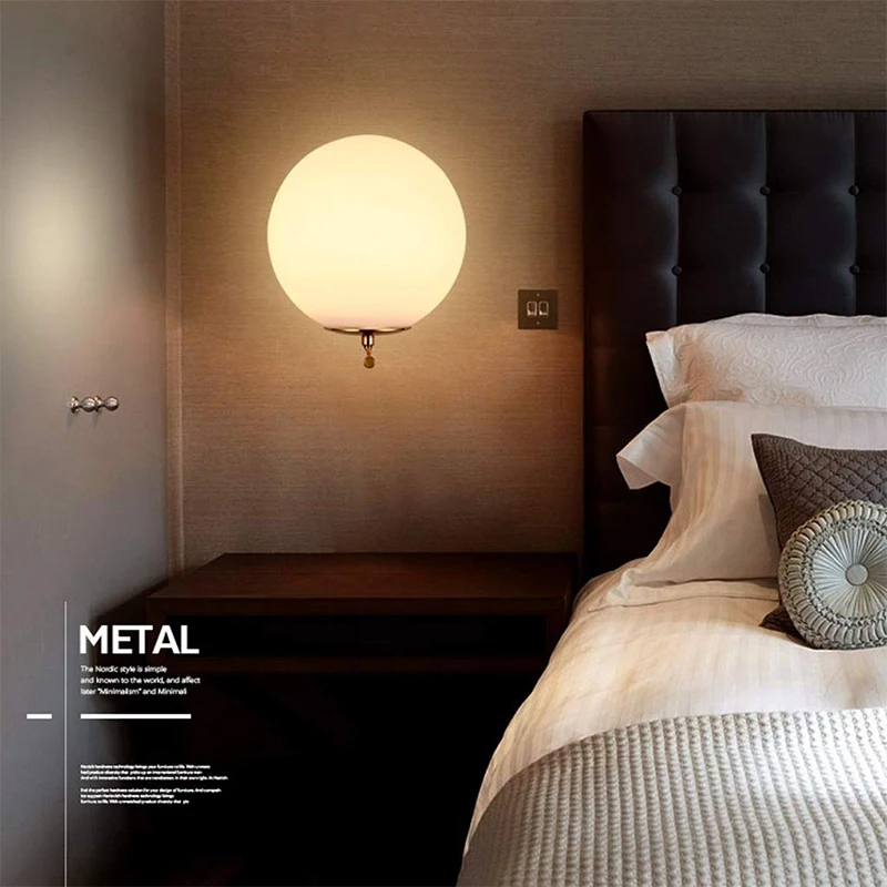 Домашний светодиодный настенный светильник, стеклянный шар, абажур E27, базовый настенный светильник, домашний декор, гостиная, спальня, коридор, лестница, бра, настенный светильник