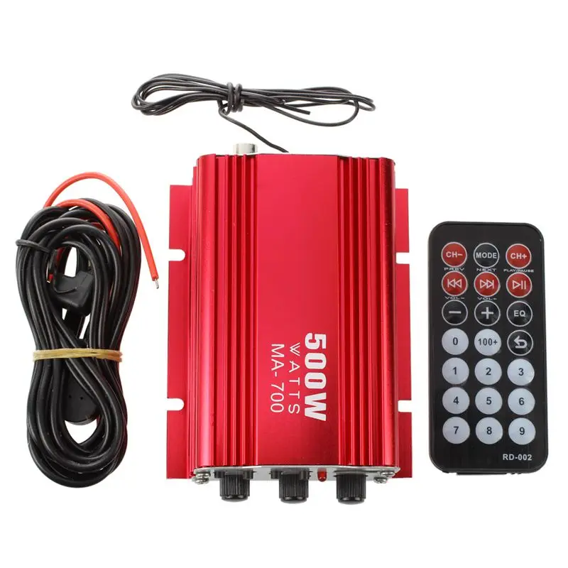 Усилитель + дистанционный динамик для 2-канальный 500 Вт Авто Мото лодки USB MP3 FM Красный
