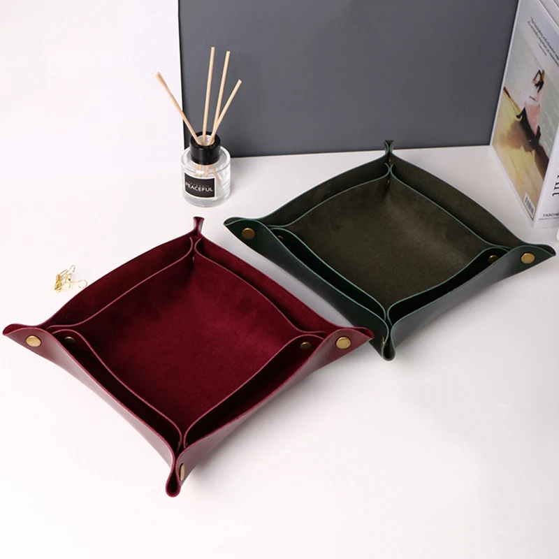 Кожаная складная коробка для хранения ювелирных изделий, косметики, разное блюдо, декоративные подносы, скандинавские ключи, коробка для хранения, настольные украшения, поделки