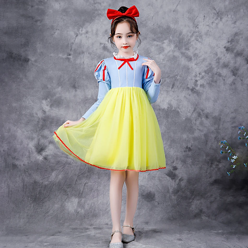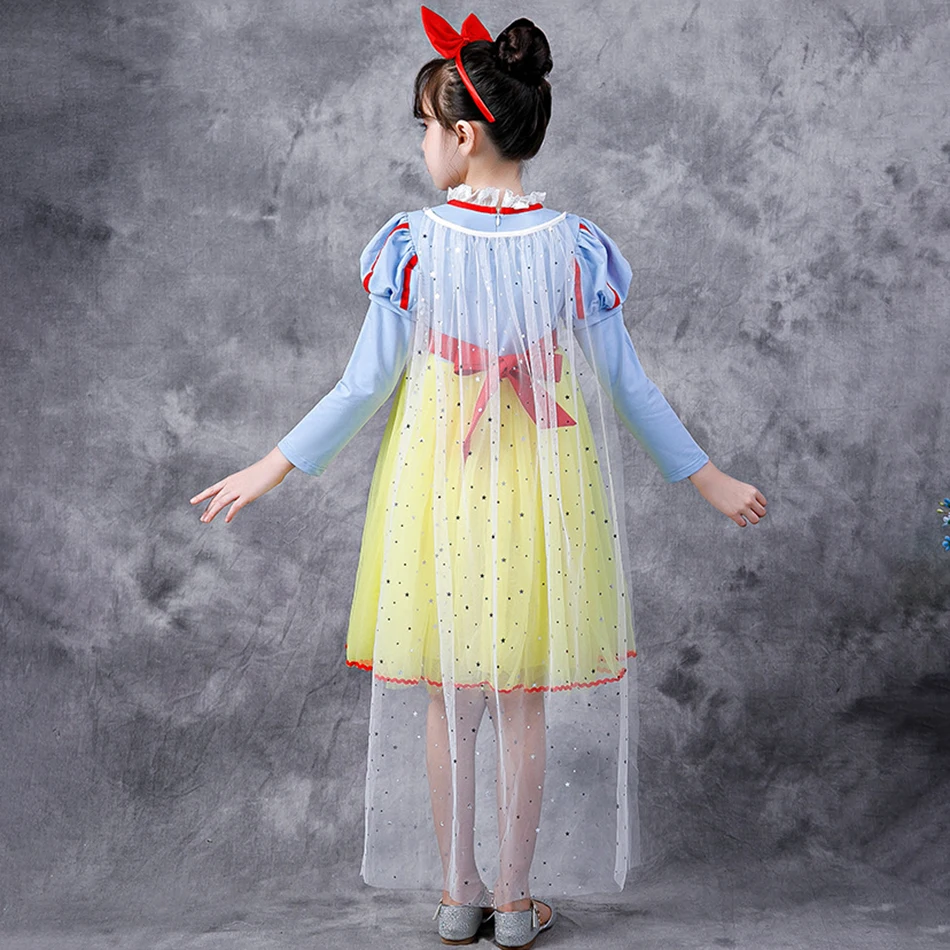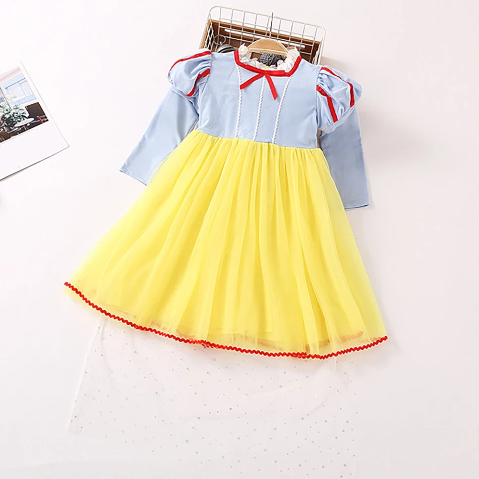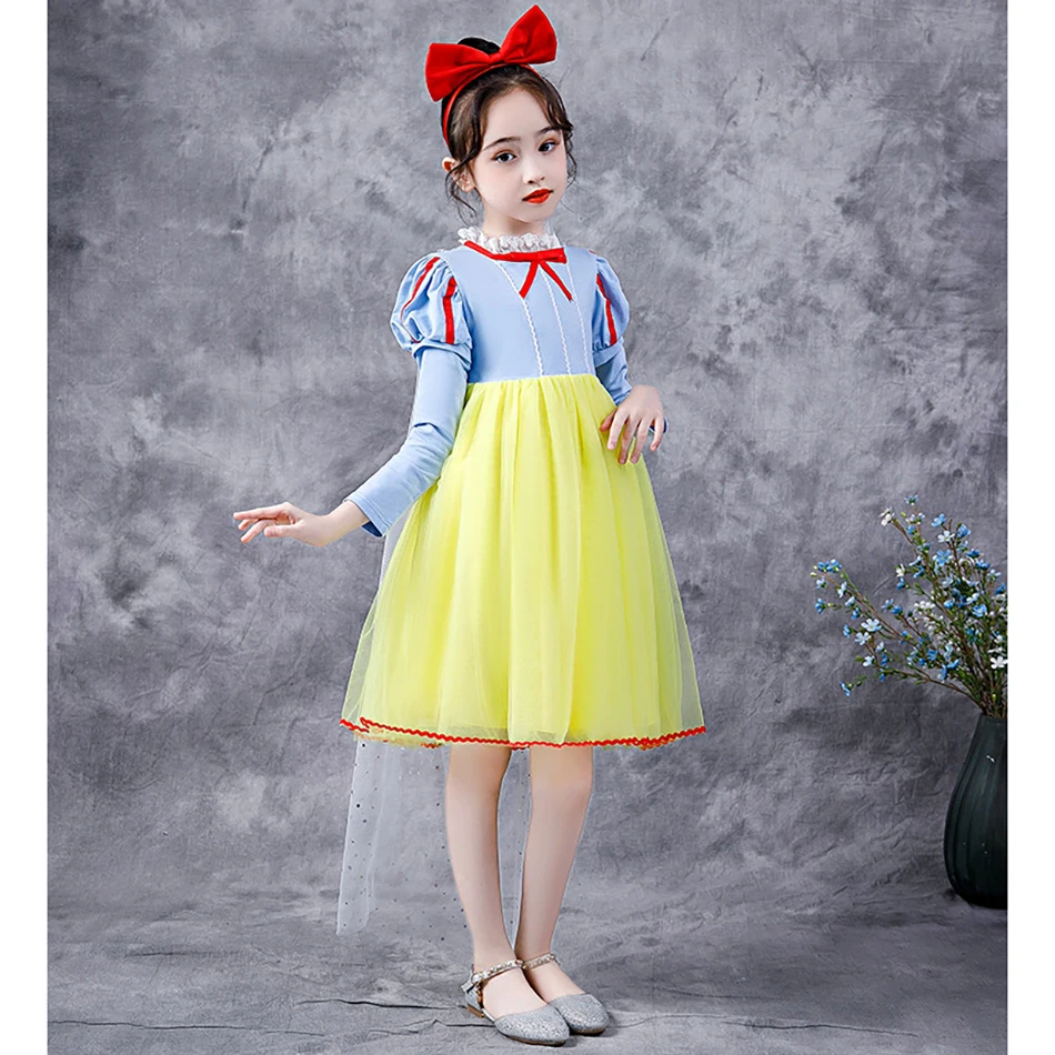 Белоснежка; Платье принцессы для костюмированной вечеринки Китайские этикетки размеров: 100-110-120-130-140-150 Размер США: 2T,3T,4T, От 5 до 6 лет, От 7 до 8 лет, От 9 до 10 лет Возраст: 2-10 лет Элегантный Длинный рукав Мягкий дышащий С сетчатой накидкой