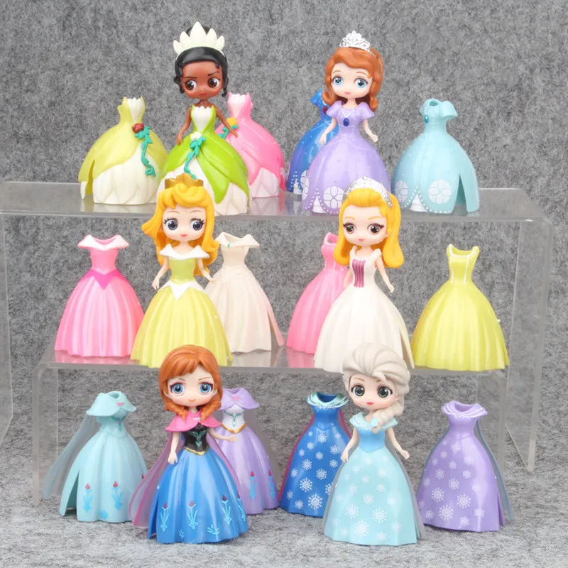 18 шт./Компл. Волшебный зажим фигурки принцессы Magiclip платье запутанная Алиса янтарь Тиана куклы Эльза Анна Модель Набор Детские игрушки для детей