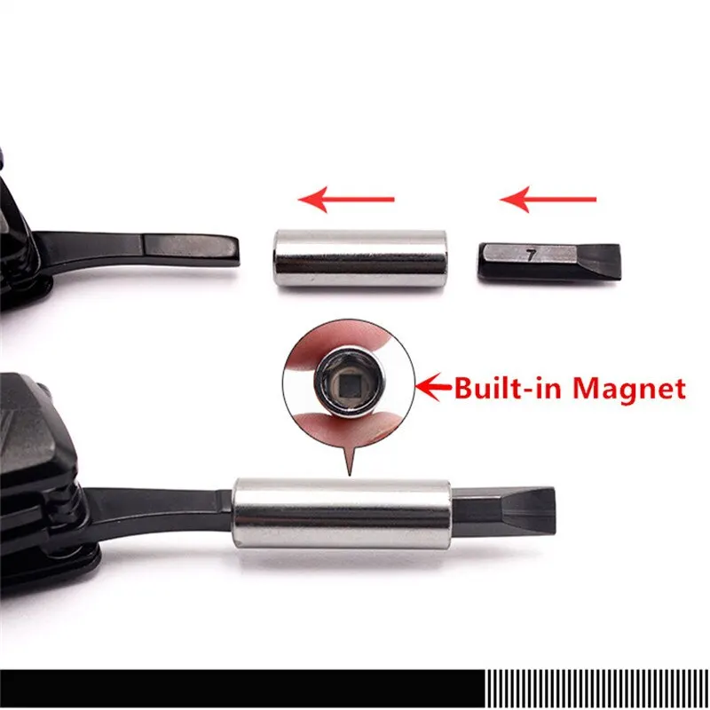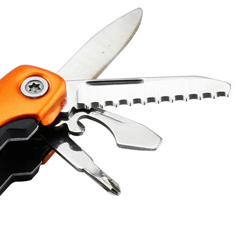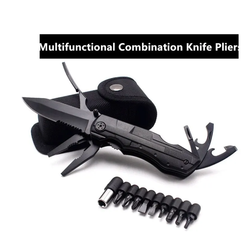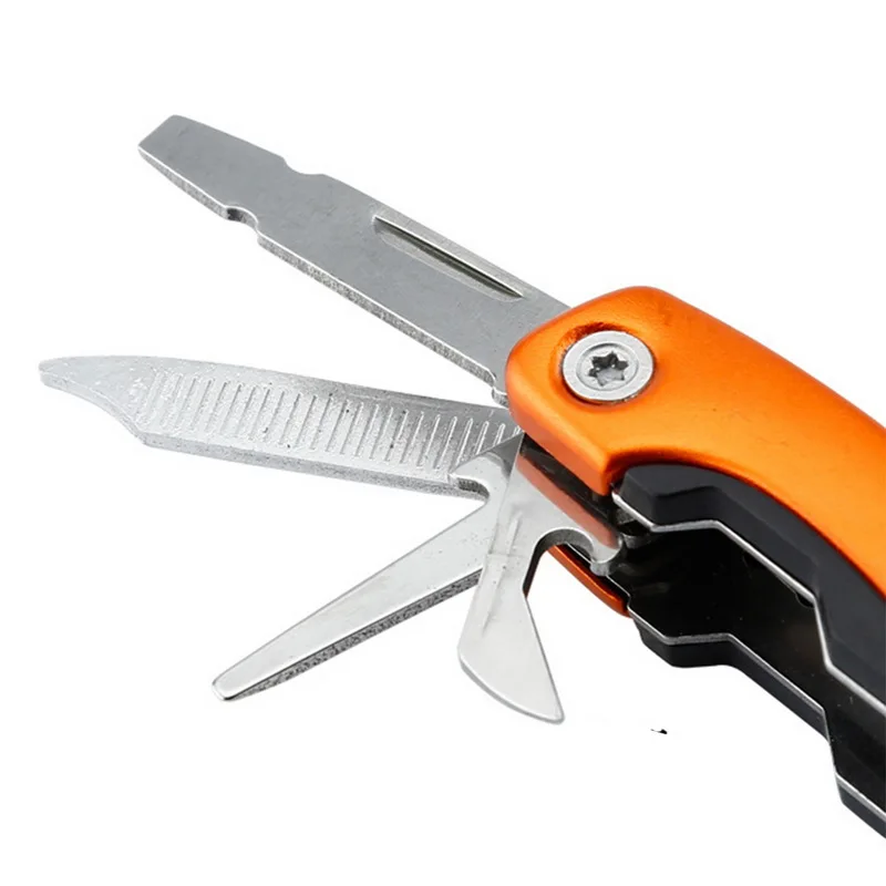 Функция: 1. Пилка для ногтей 2, главный нож 3, прямая отвертка 4, втулка 5. Обычный зажим 6, тиски 7, резак для проволоки 8, маленький нож 9, крестовая отвертка 10, открывалка для бутылок 11, маленький открывалка для бутылок 12, консервный нож 13, зубчатый нож 14 , 11 видов головок для конвертации отверток (см. Второе изображение) В комплект входит: Многофункциональные плоскогубцы, 11 отверток, 1 нейлоновый мешок (как показано на рисунке)