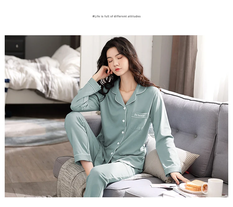Высококачественные хлопковые пижамы для женщин с длинными рукавами на весну осень и зиму, верхняя одежда размера плюс, простой домашний костюм для девочек