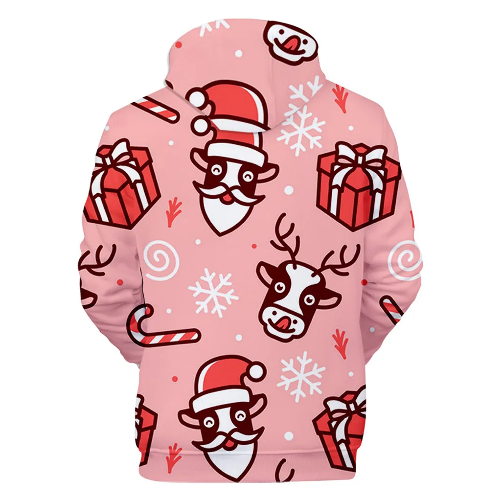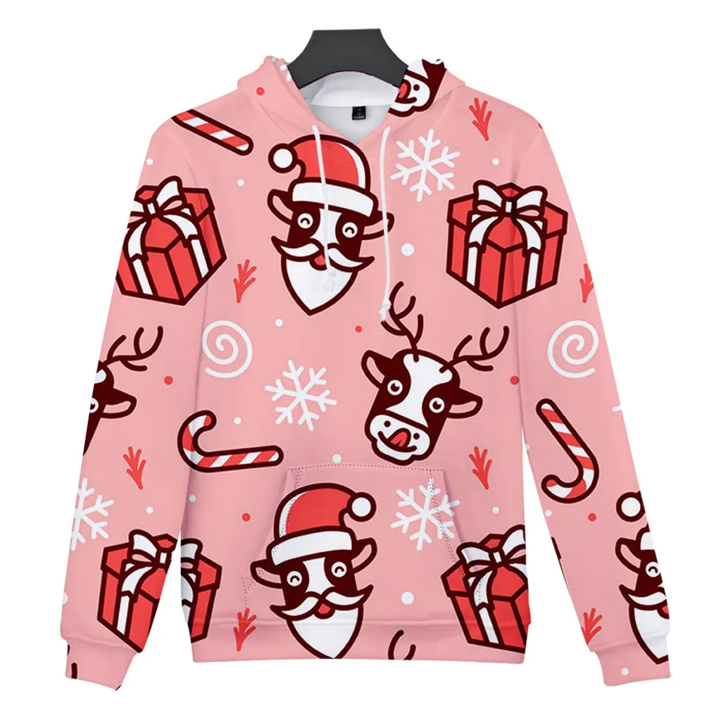 Унисекс; Рождественский пуловер с длинными рукавами и принтом; Толстовка с капюшоном; Топы